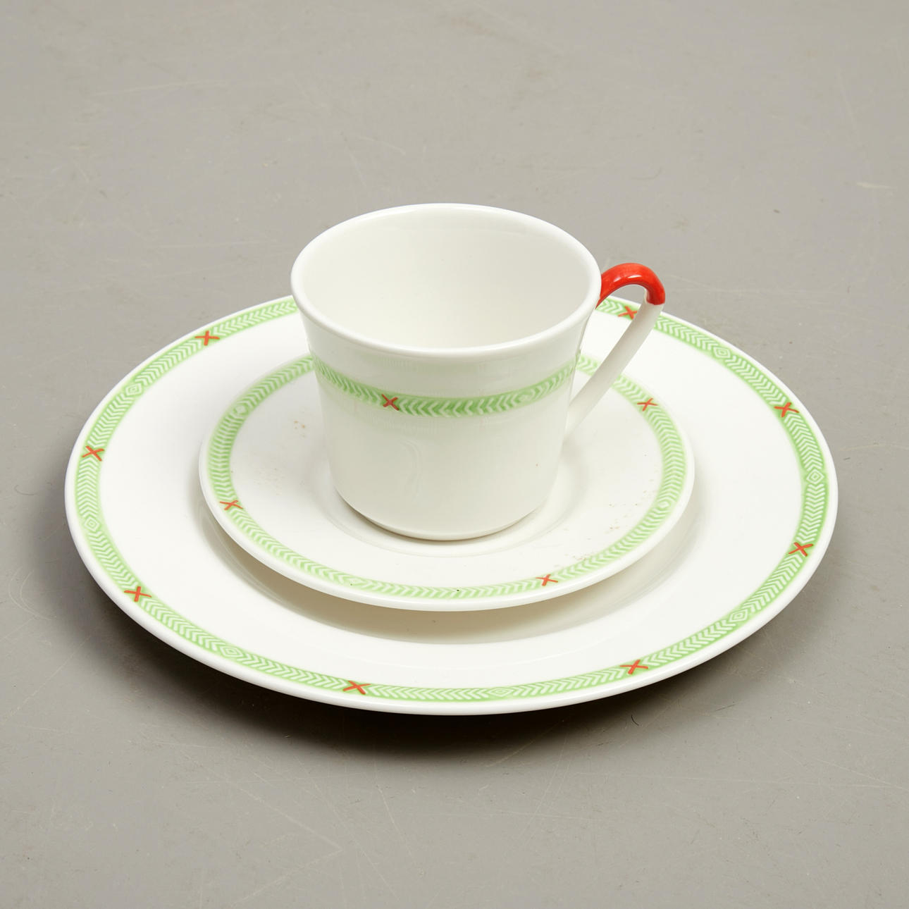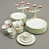 bestående av koppar och fat 9 delar (9 koppar+11 fat), mattallrikar 9 (diameter 25,5 cm), assietter 15 (diameter 20 cm), kandelabrar 2 st en Rörstrand en äldre från Gustavsberg.