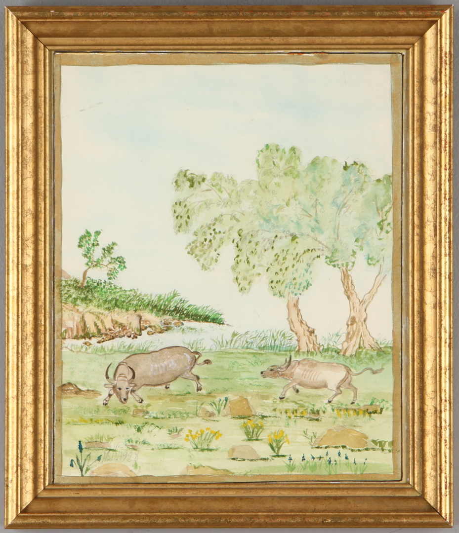 19595. NILS VON DARDEL. TILLSKRIVEN. Vattenbufflar, akvarell, monogramsign och dat 1928.