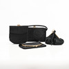 Clutch/ handväska, handsygg i svart satin med låsram i gulmetall, 1940-tal, 15x15 cm.