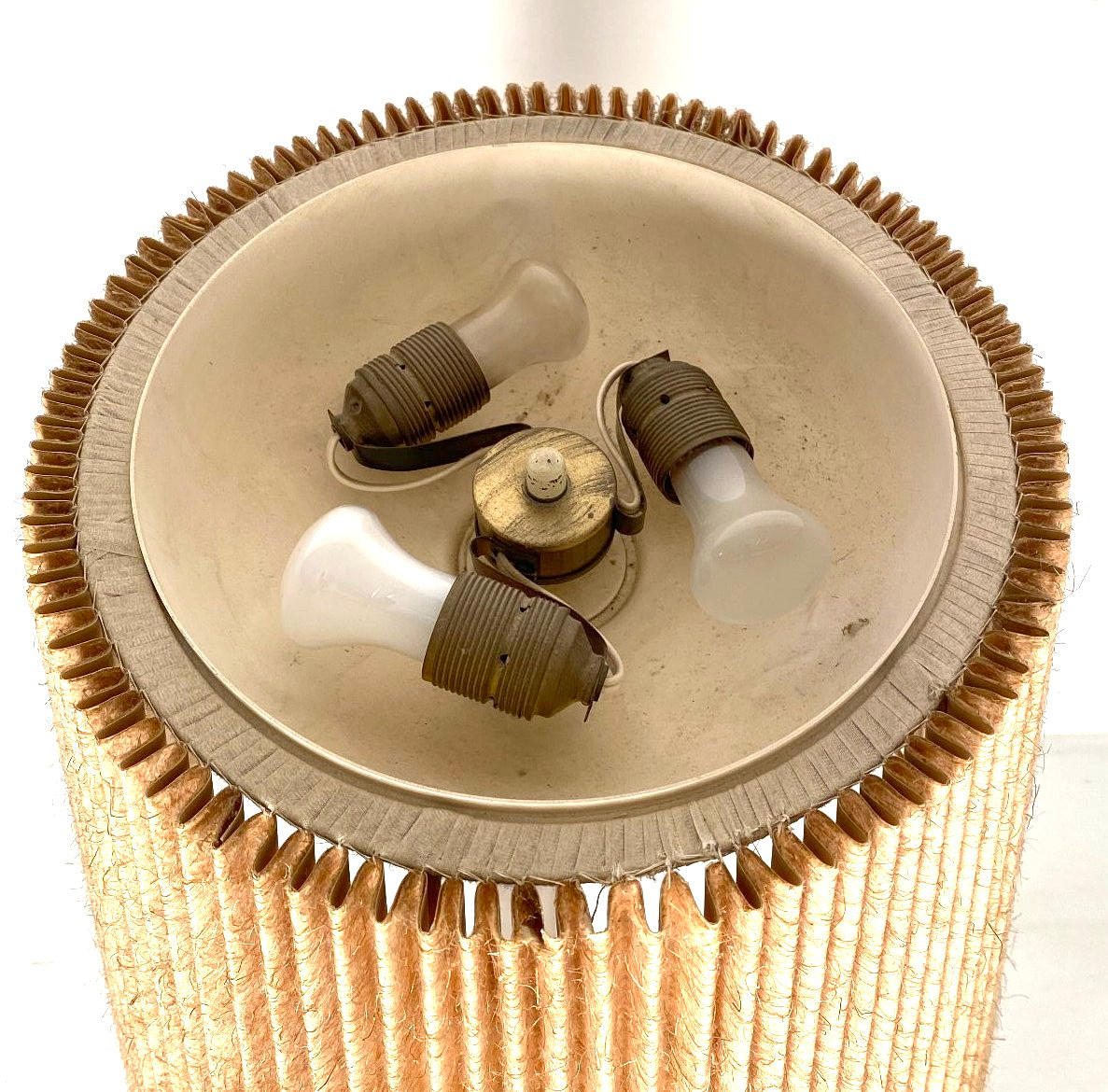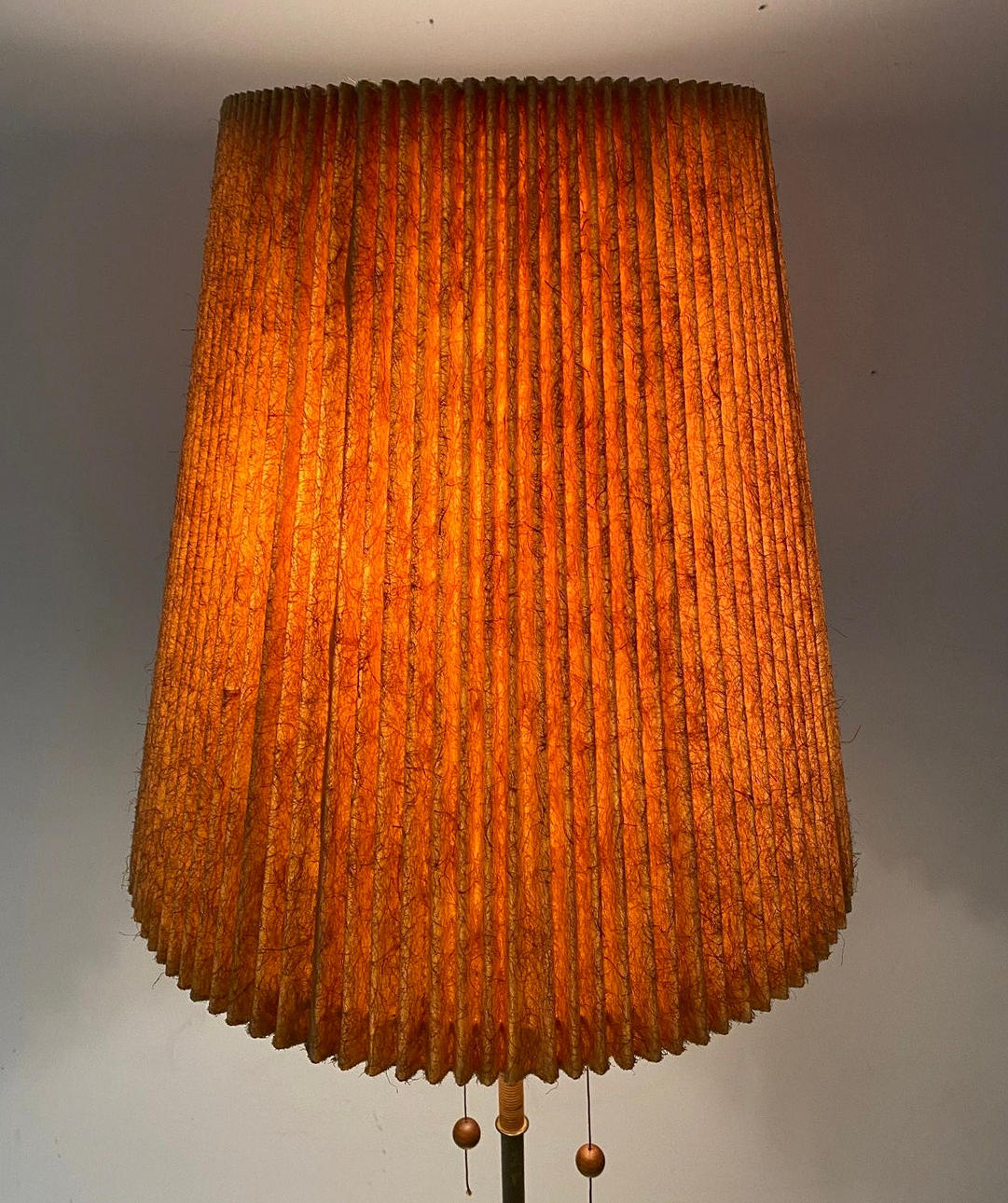 Golvlampa/uplight 1950-talet, vikta glasfiber lampskärm.