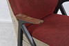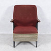 Klädsel med fläckar och slitage.