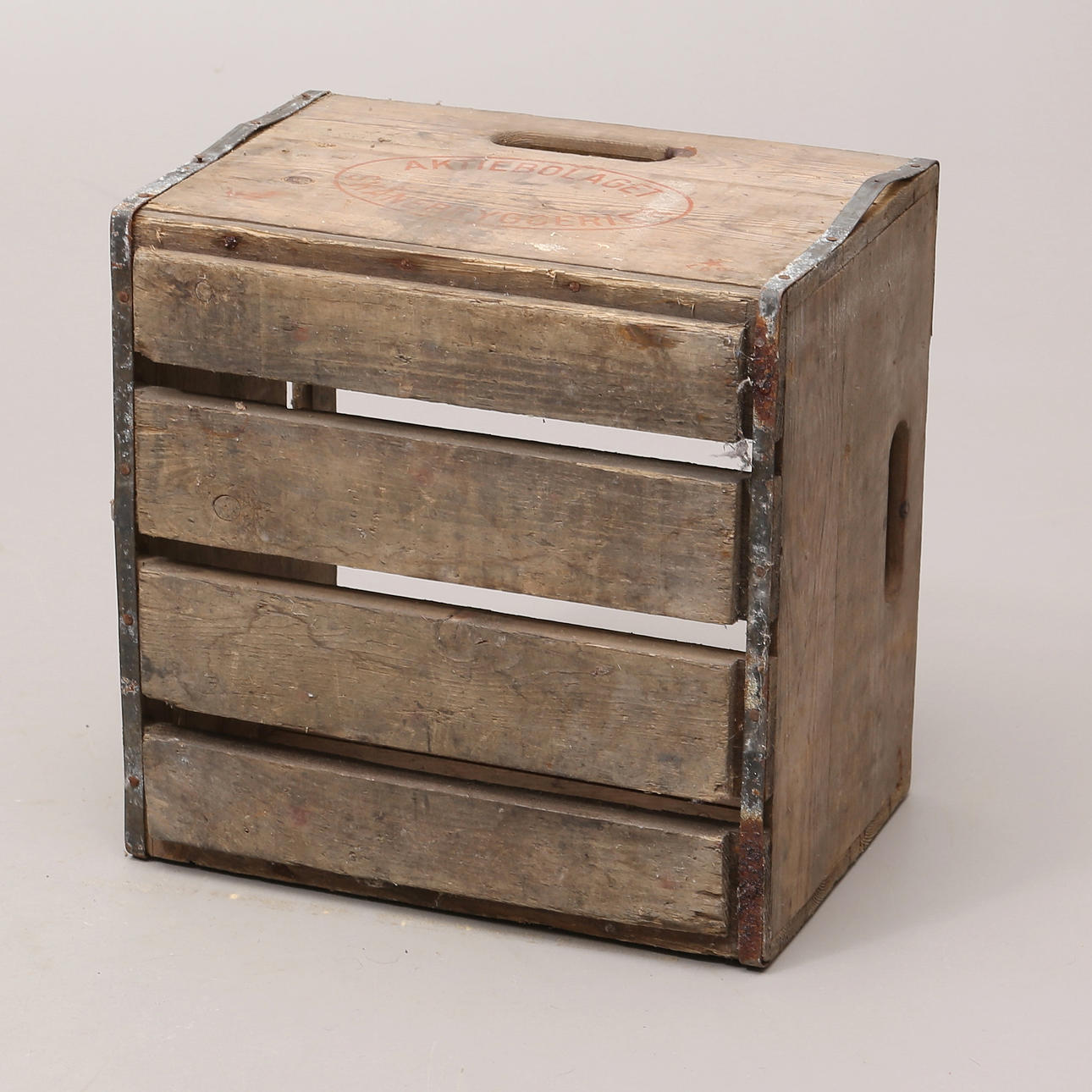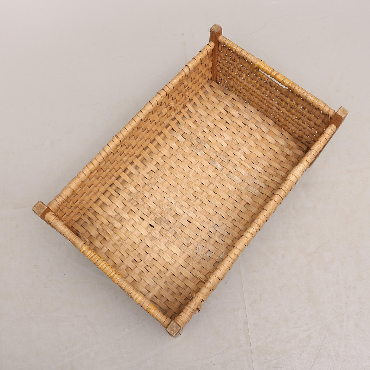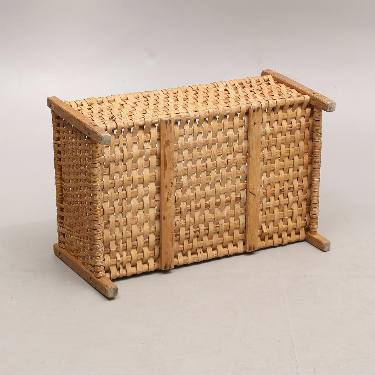 Korg höjd 38, storlek 74x47 cm. Träback, Aktiebolaget Skånebryggerier, höjd 25, storlek 35x35 cm.