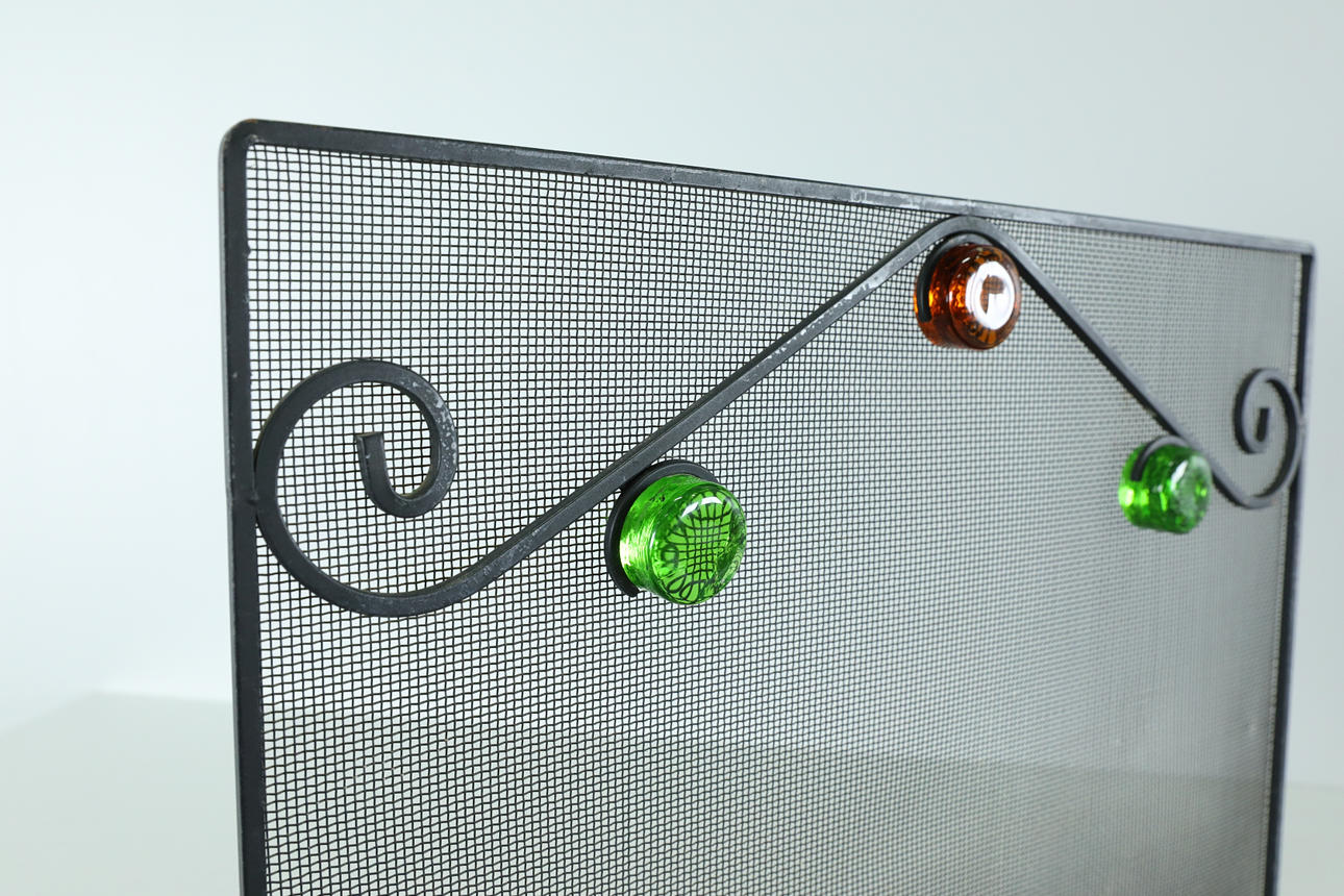 1972884. GNISTSKYDD, metall och glas, 1950-tal.