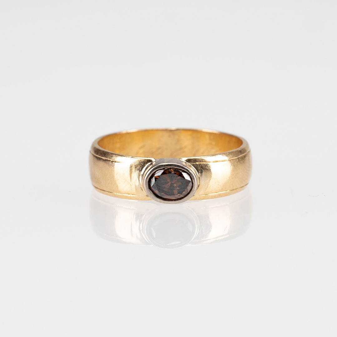 1974909. RING, oval brun diamant, 18K guld.