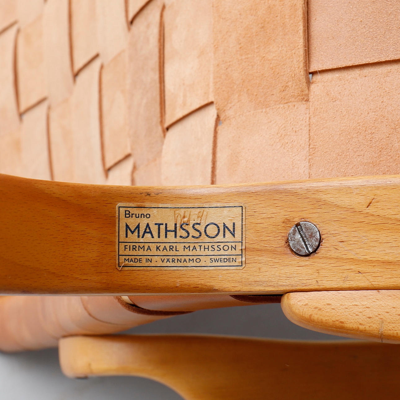 Firma Karl Mathsson 1941, bok med flätad läderklädsel, rygghöjd ca 82 cm. Etikettmärkt.