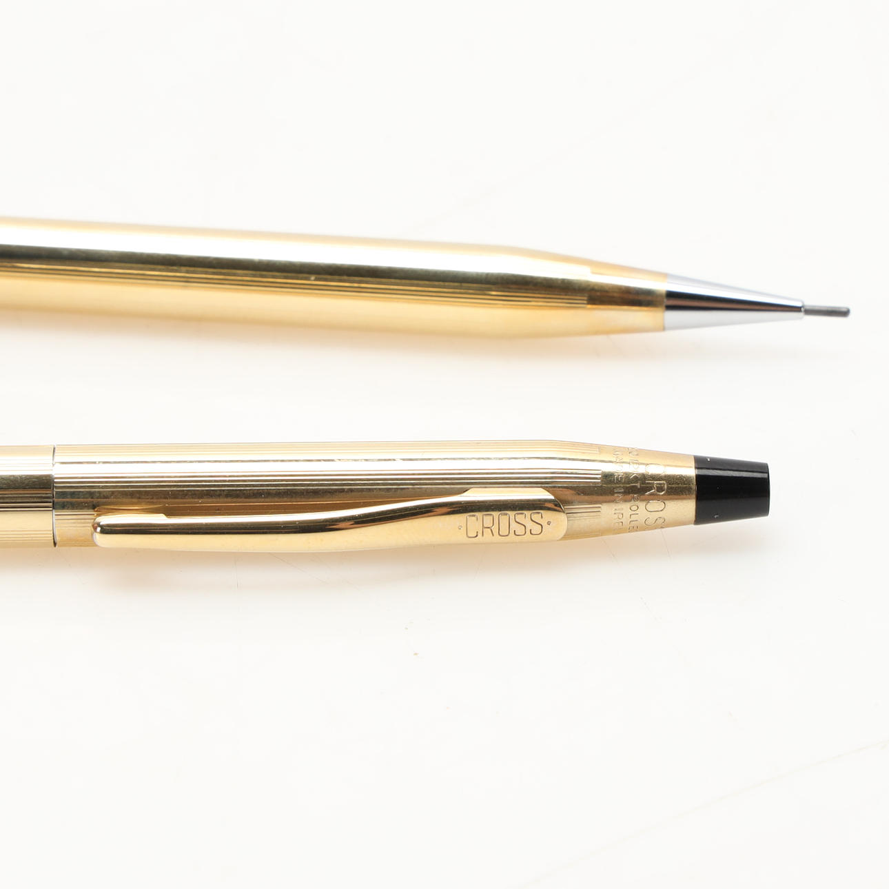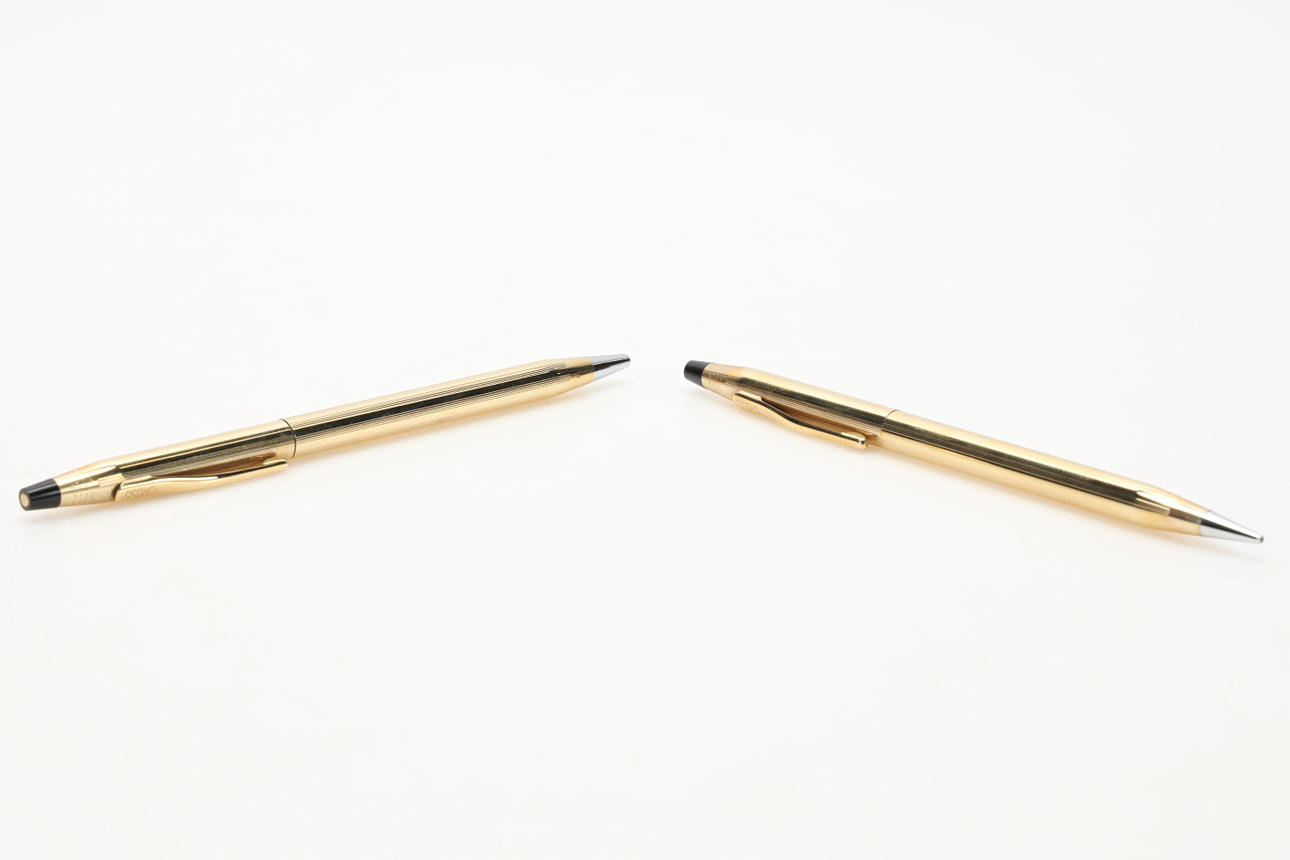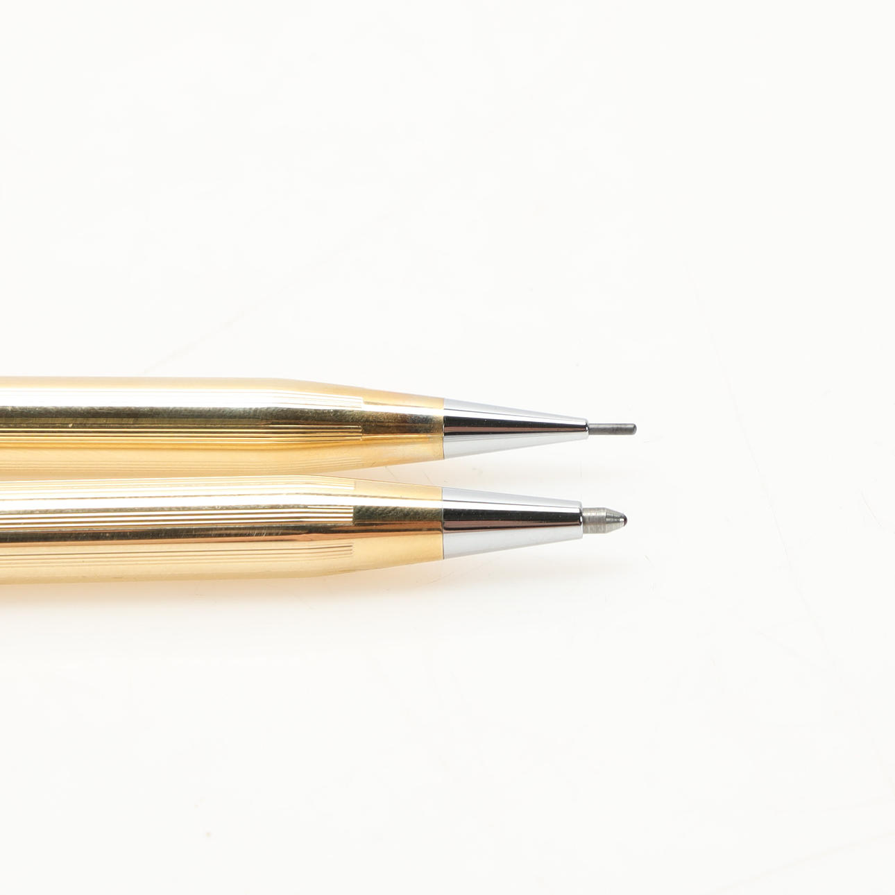 Skrin med kulspetspenna och blyertstiftpenna. Fodral L ca 16,5 cm.