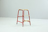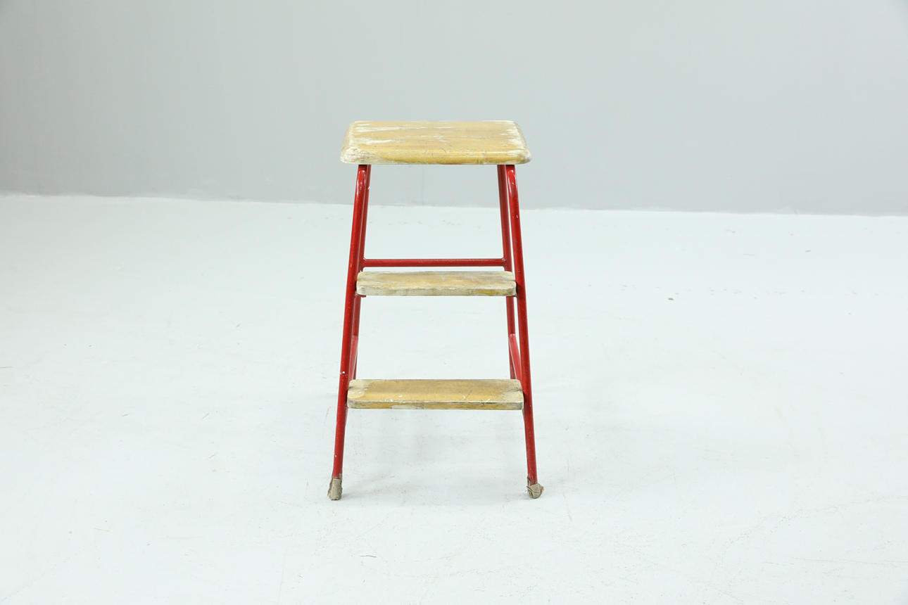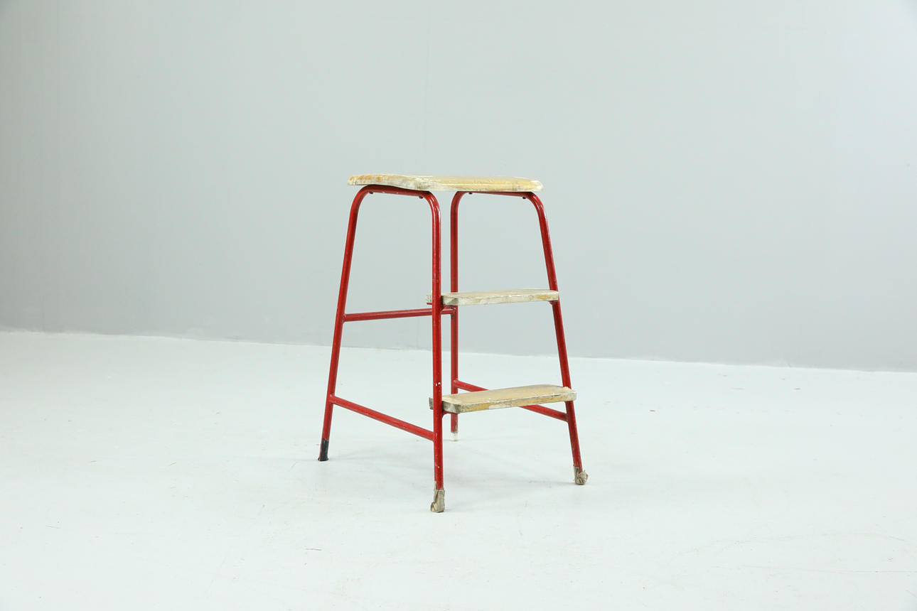 Rödlackerad metall, trä. höjd 58 cm bredd ca 34 cm djup 39 cm.