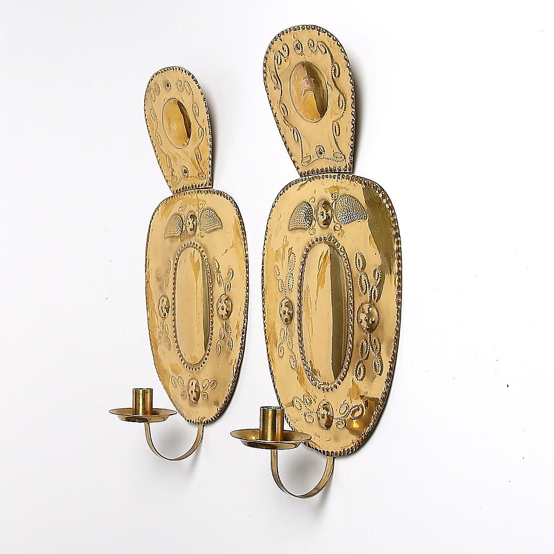 198224. LJUSPLÅTAR, mässing, barockstil, 18/1900-tal.