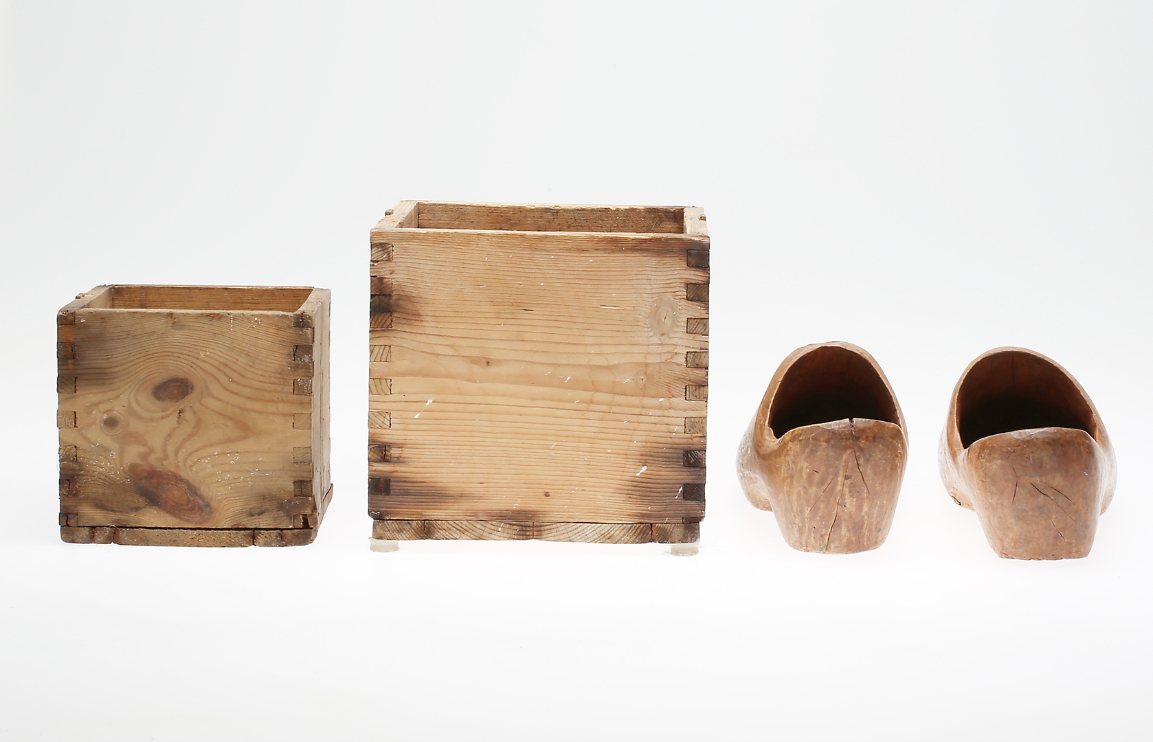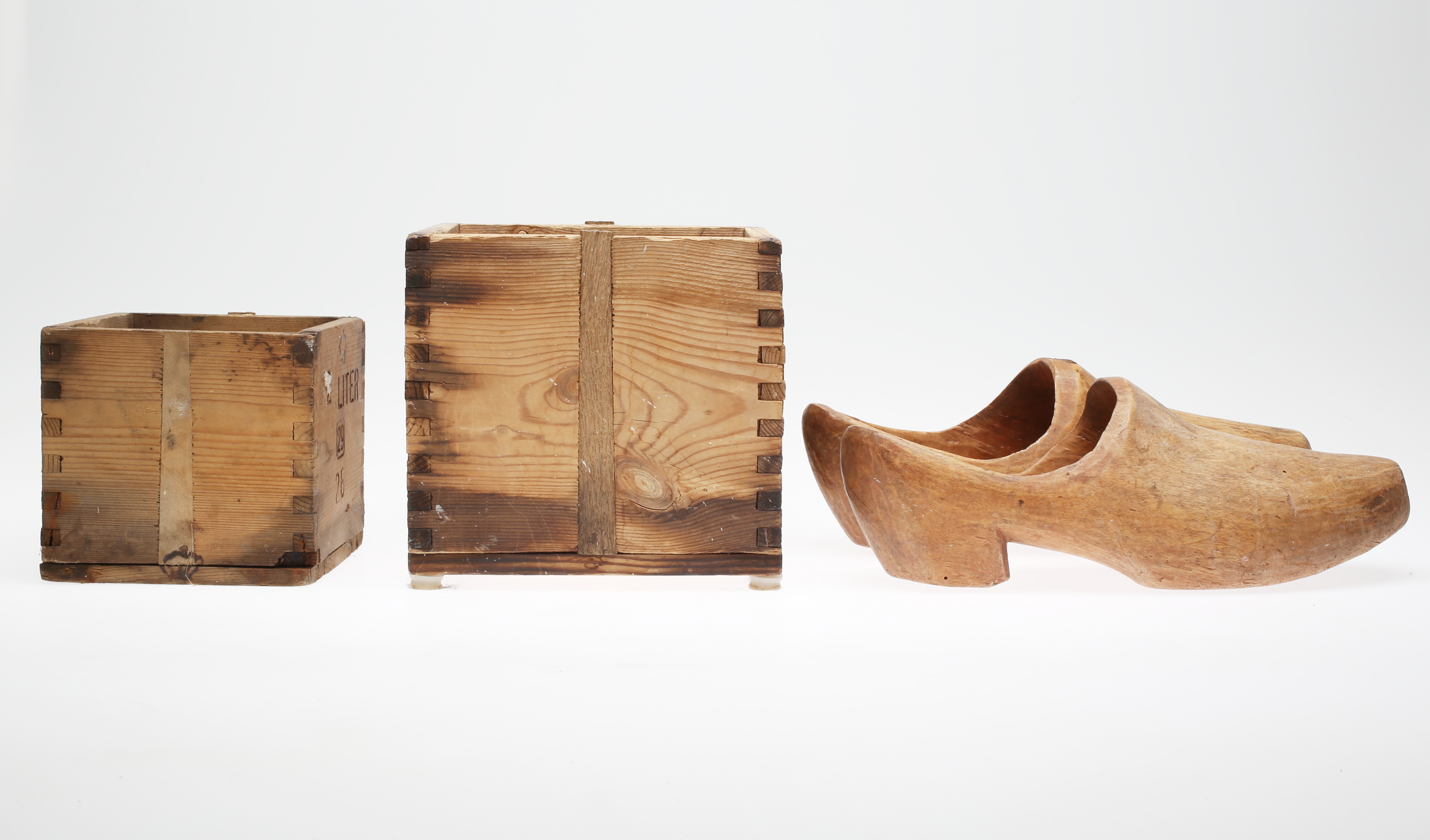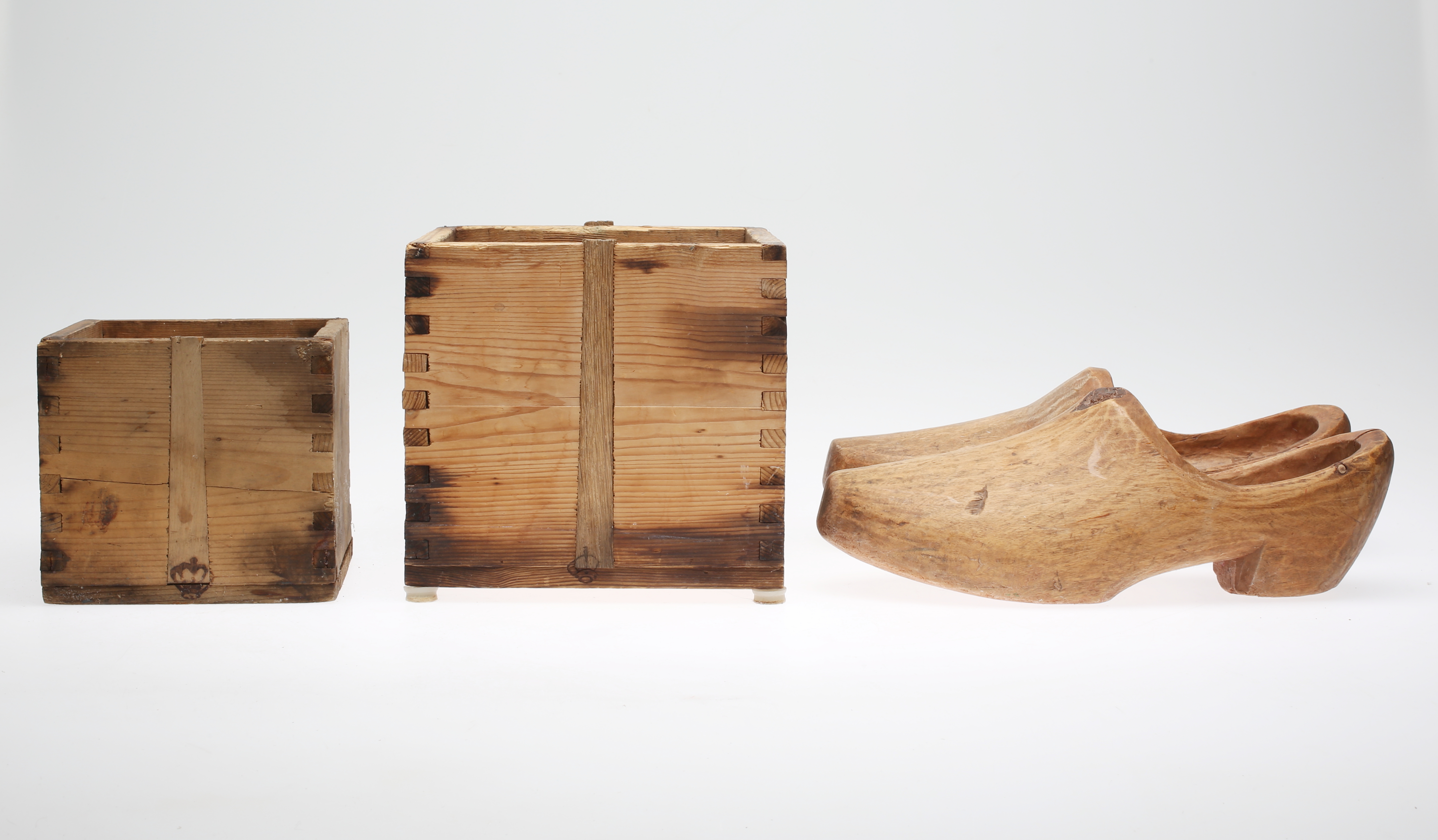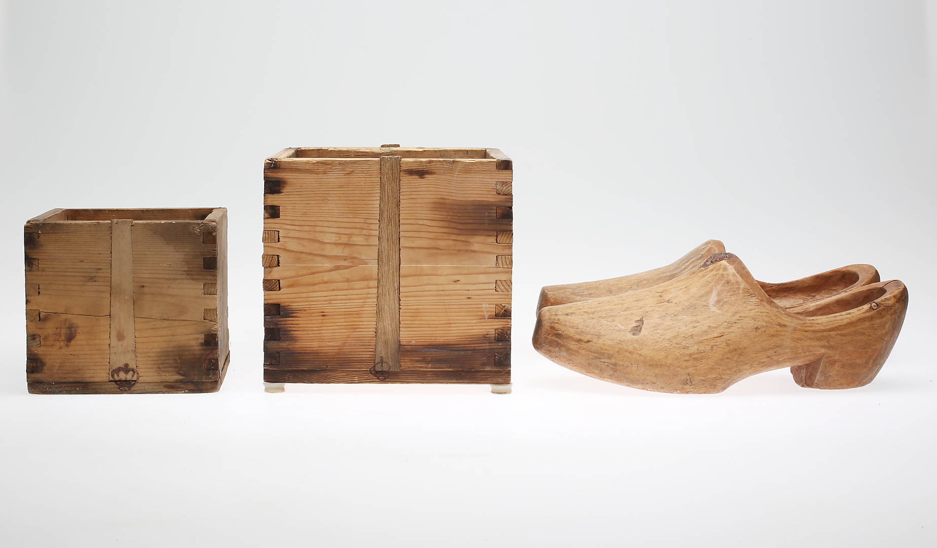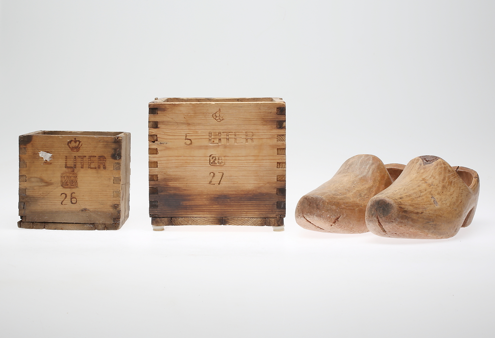 198278. ALLMOGEFÖREMÅL, träskor och mått.