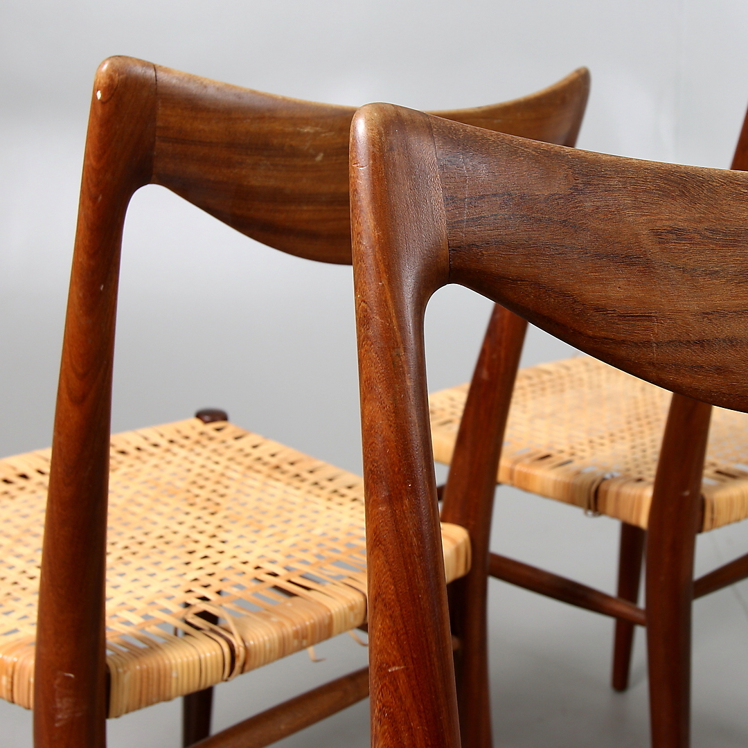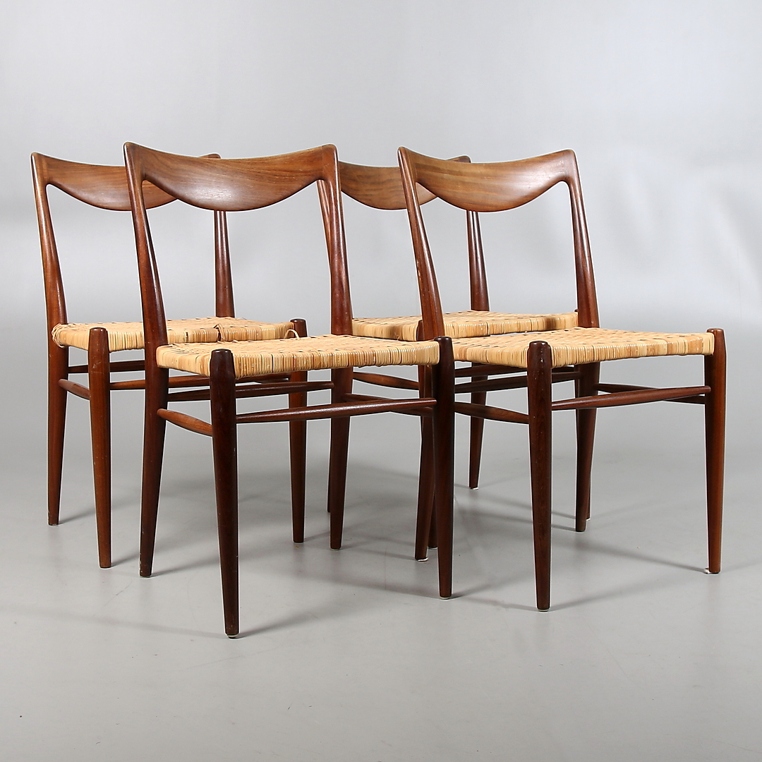 198347. STOLAR, 4 st, valnöt, oidentifierad formgivare, 1900-talets andra hälft.