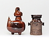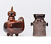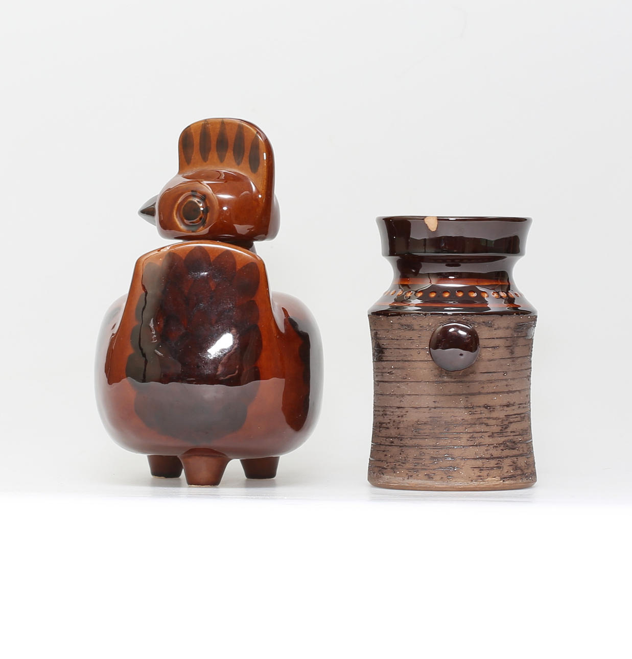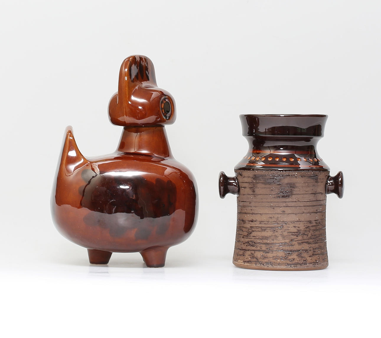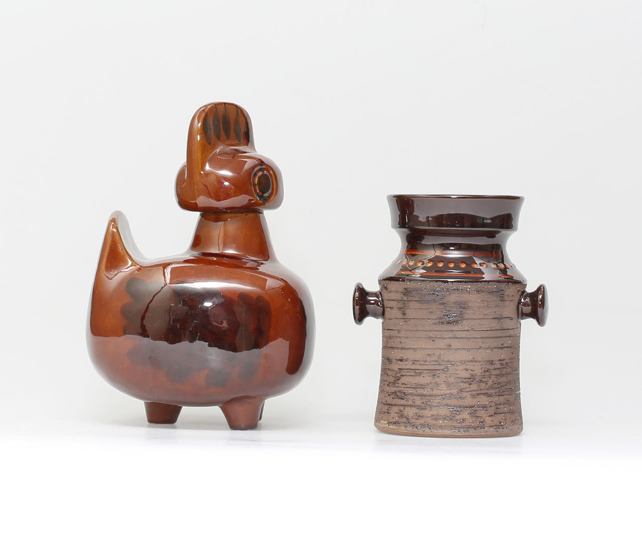 Höna, höjd 26 cm. Vas, höjd 18,5 cm.