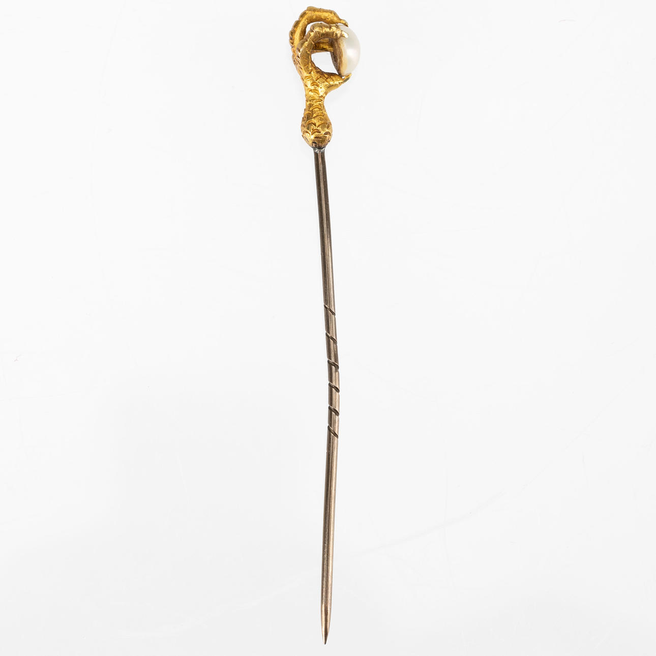 Halv pärla diameter 5,5 mm, klo i guld, kråsnålens längd 70 mm.