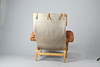 Stomme i bok, canvas, dynor samt nackkudde i naturfärgad läder. Sitthöjd ca. 39 cm, rygghöjd 99 cm.