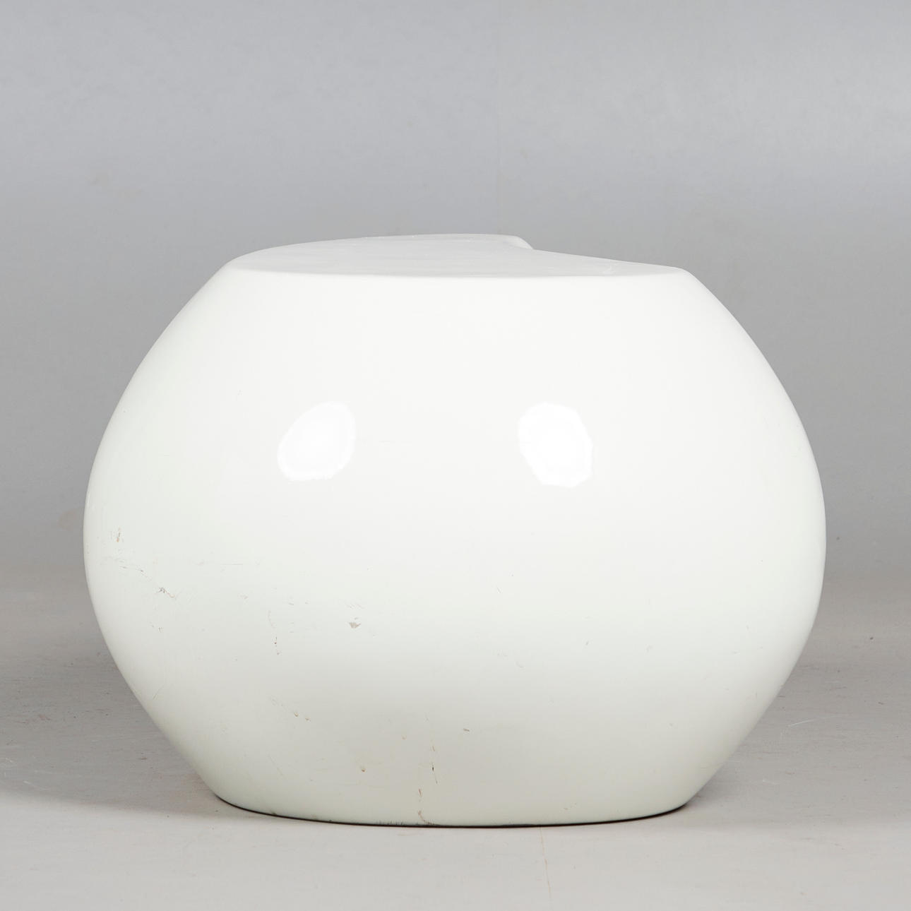 Bord/sidobord, plast. Vitlackerat soffbord i plast, organiskt formad konstruktion, H.40cm, L.95cm, W.50cm.