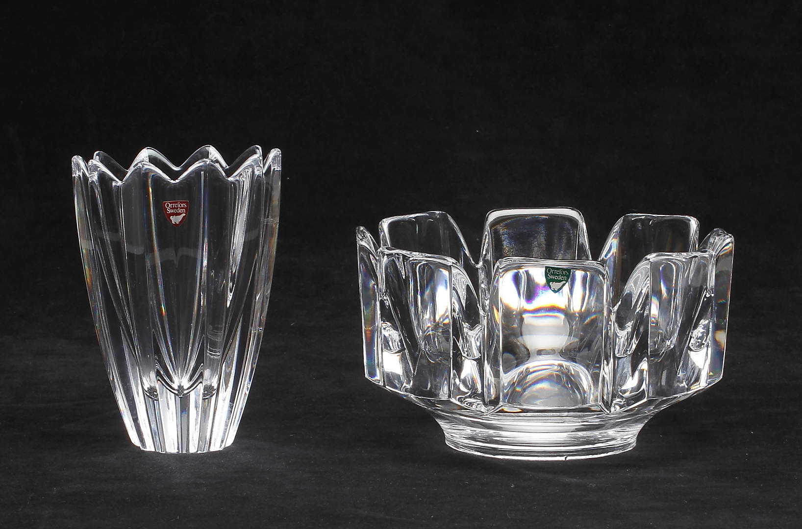 200181. SKÅL samt VAS, 2 delar, Orrefors.