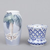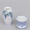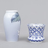 Vas musselmalet helblond, märkt 1/1015, höjd 7 cm. Vas, märkt 2687/88A, höjd 13 cm.
