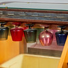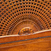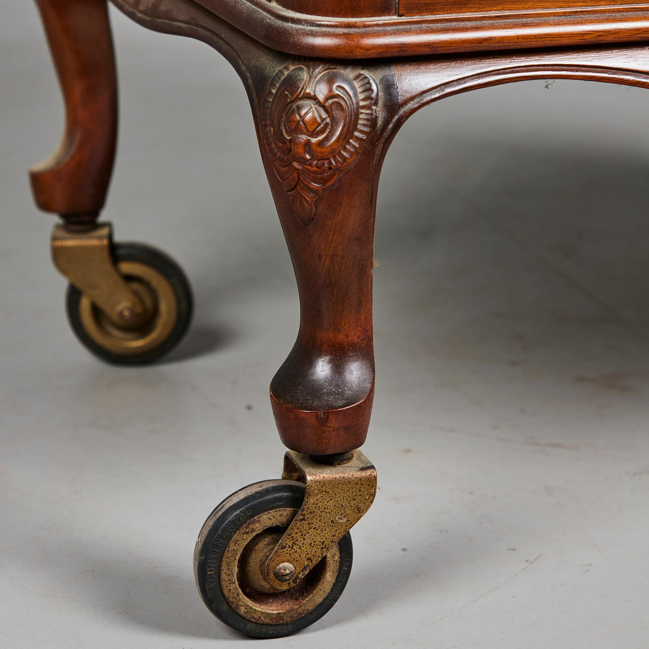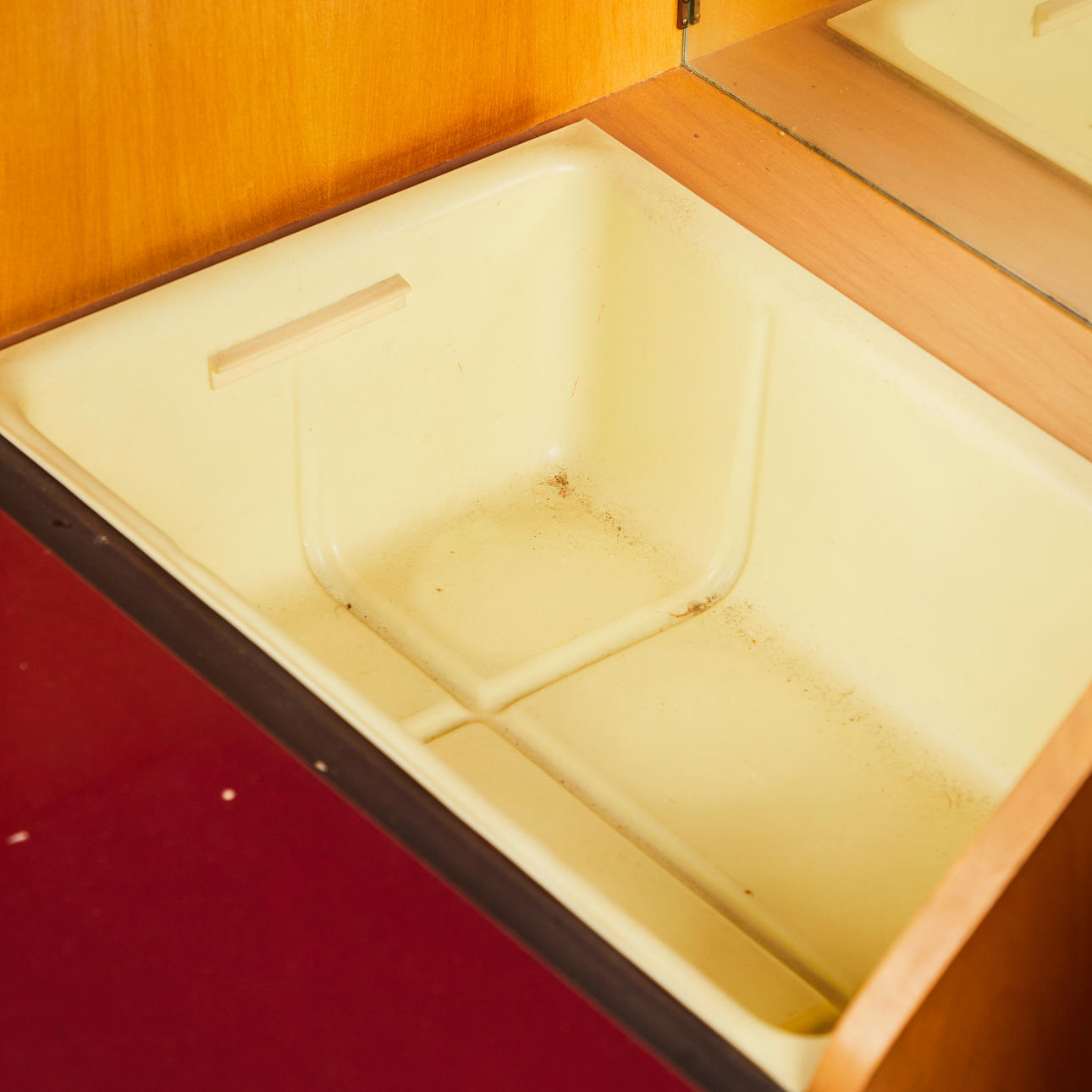 Åldersanpassade tecken på användning och gnidning, vaxrester och repor i träet.
