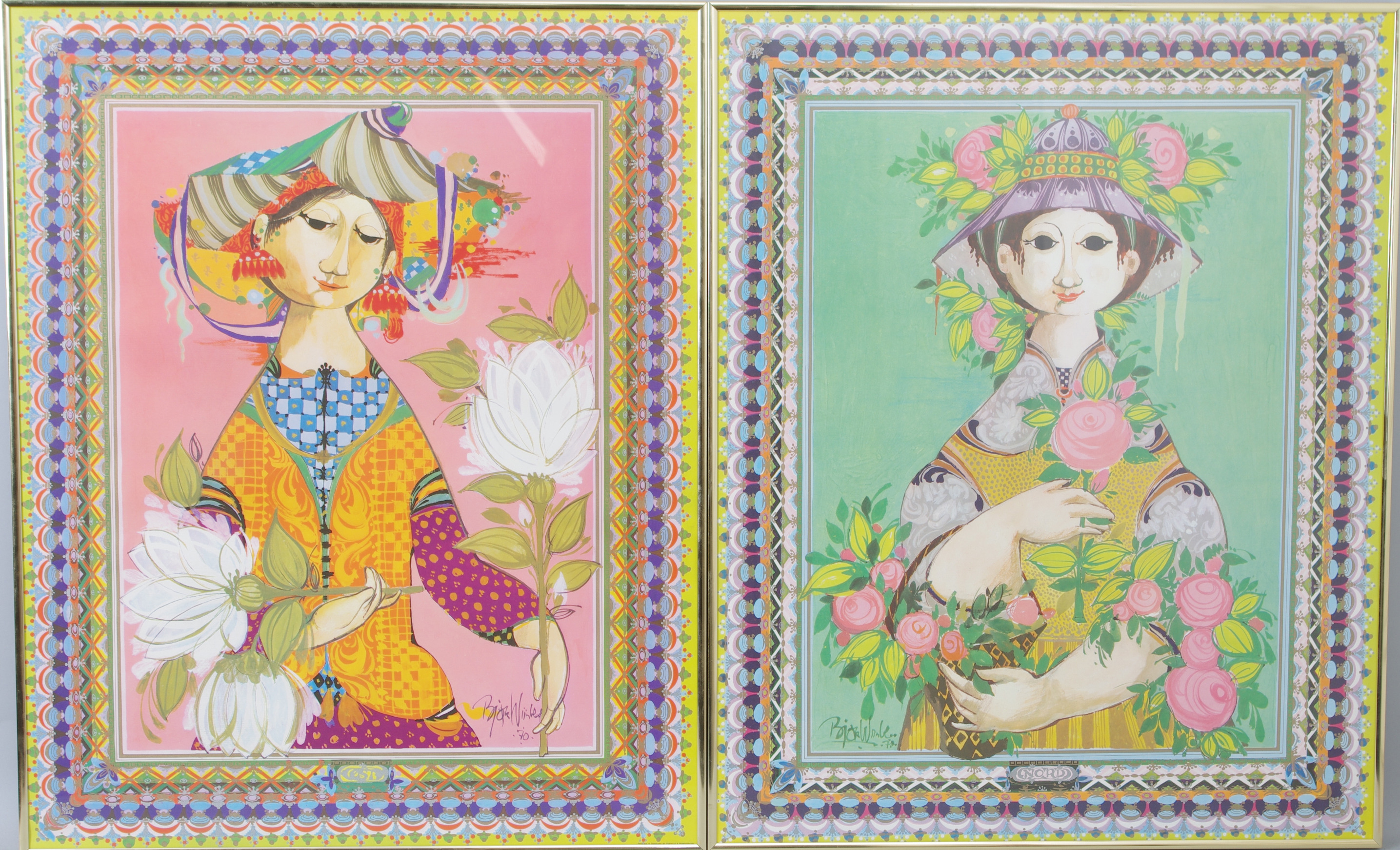 201287. BJÖRN WIINBLAD. "Nord" samt "Öst", 2 stycken tryck.