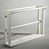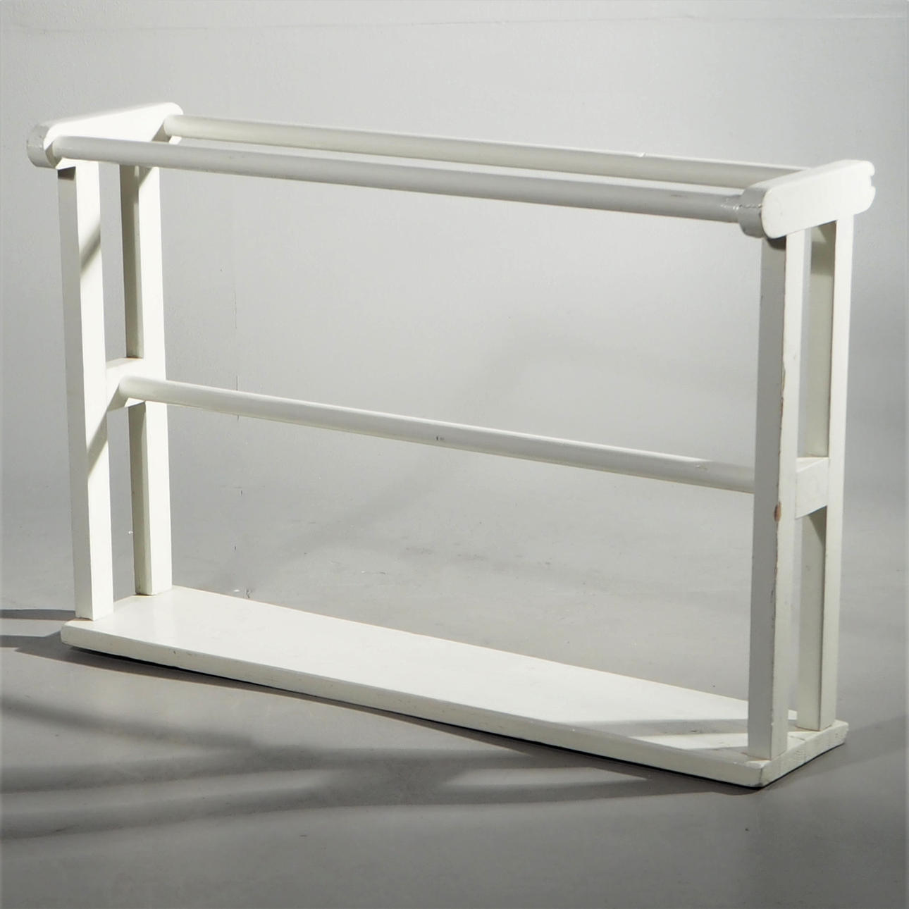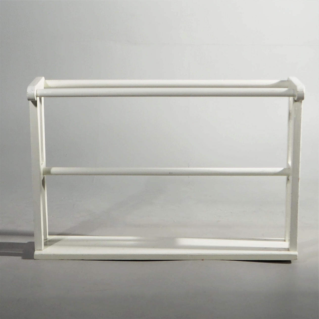 Vitmålat trä. Höjd 52 cm, längd 77,5 cm, bredd 21 cm.