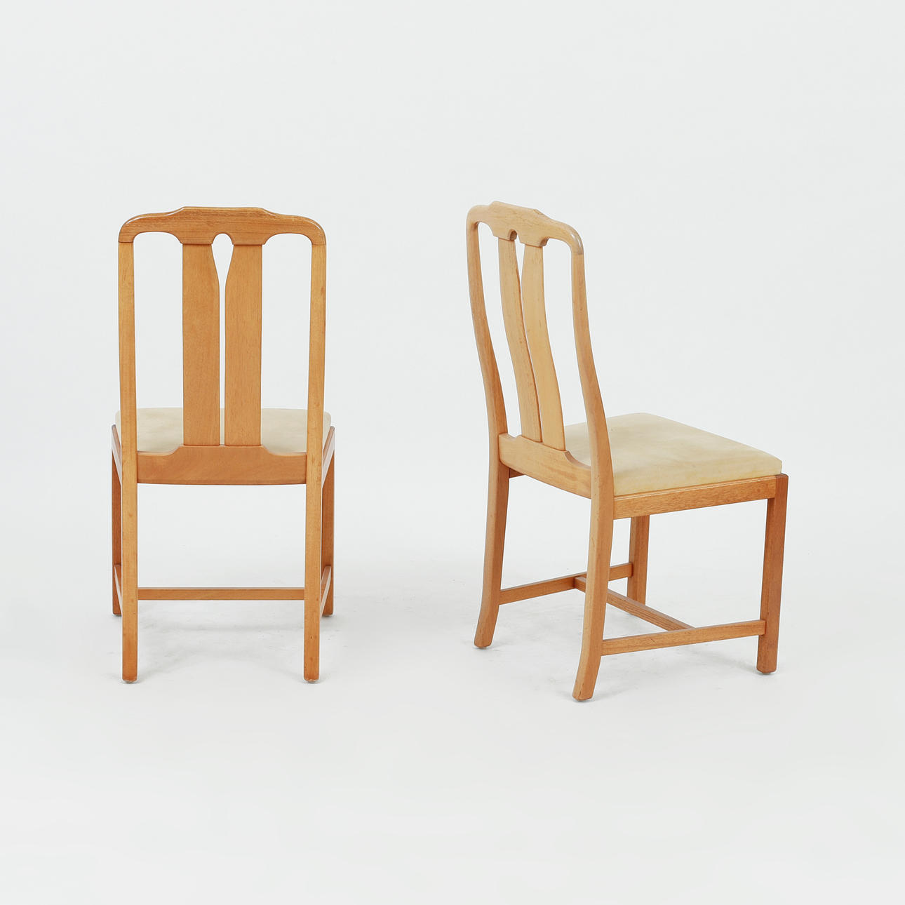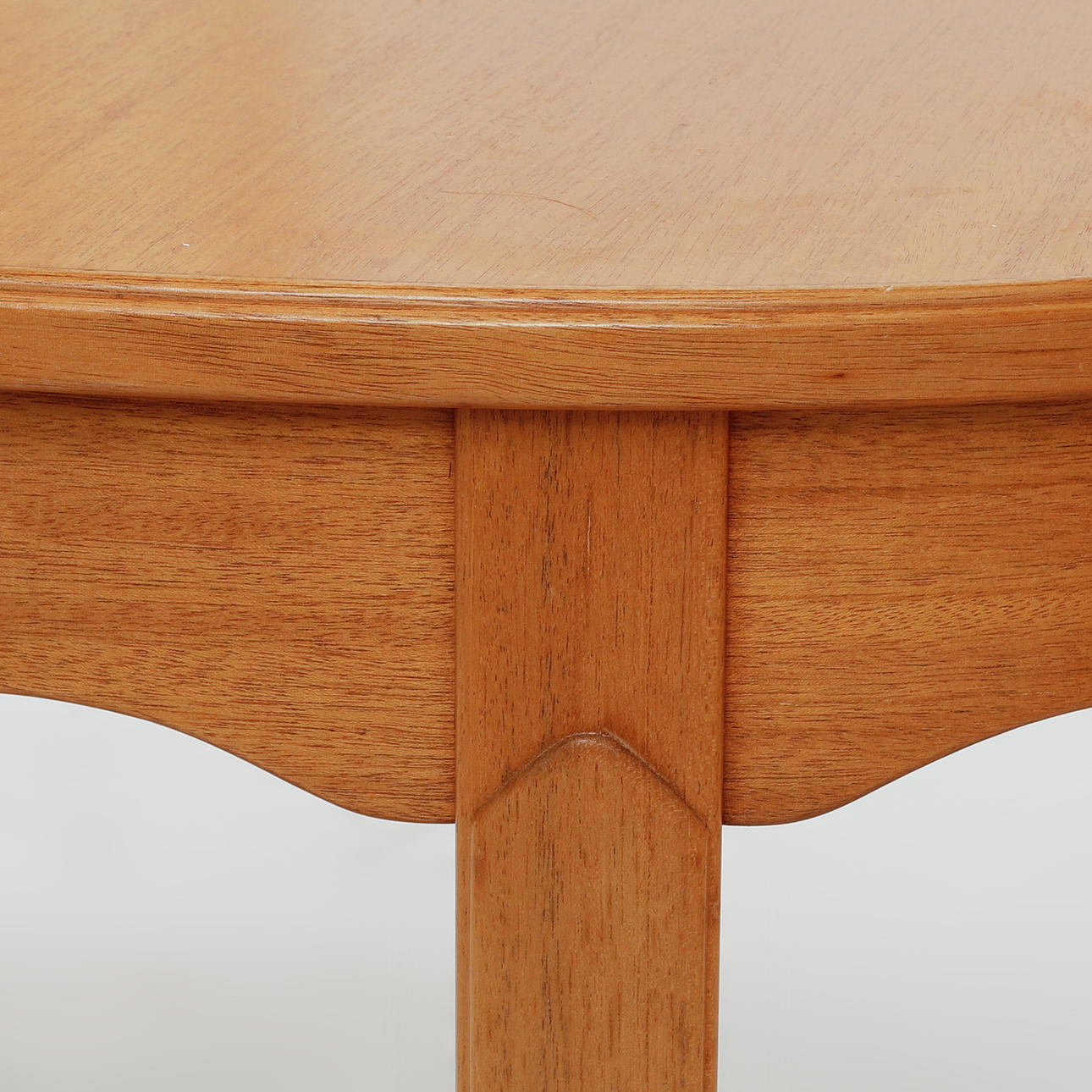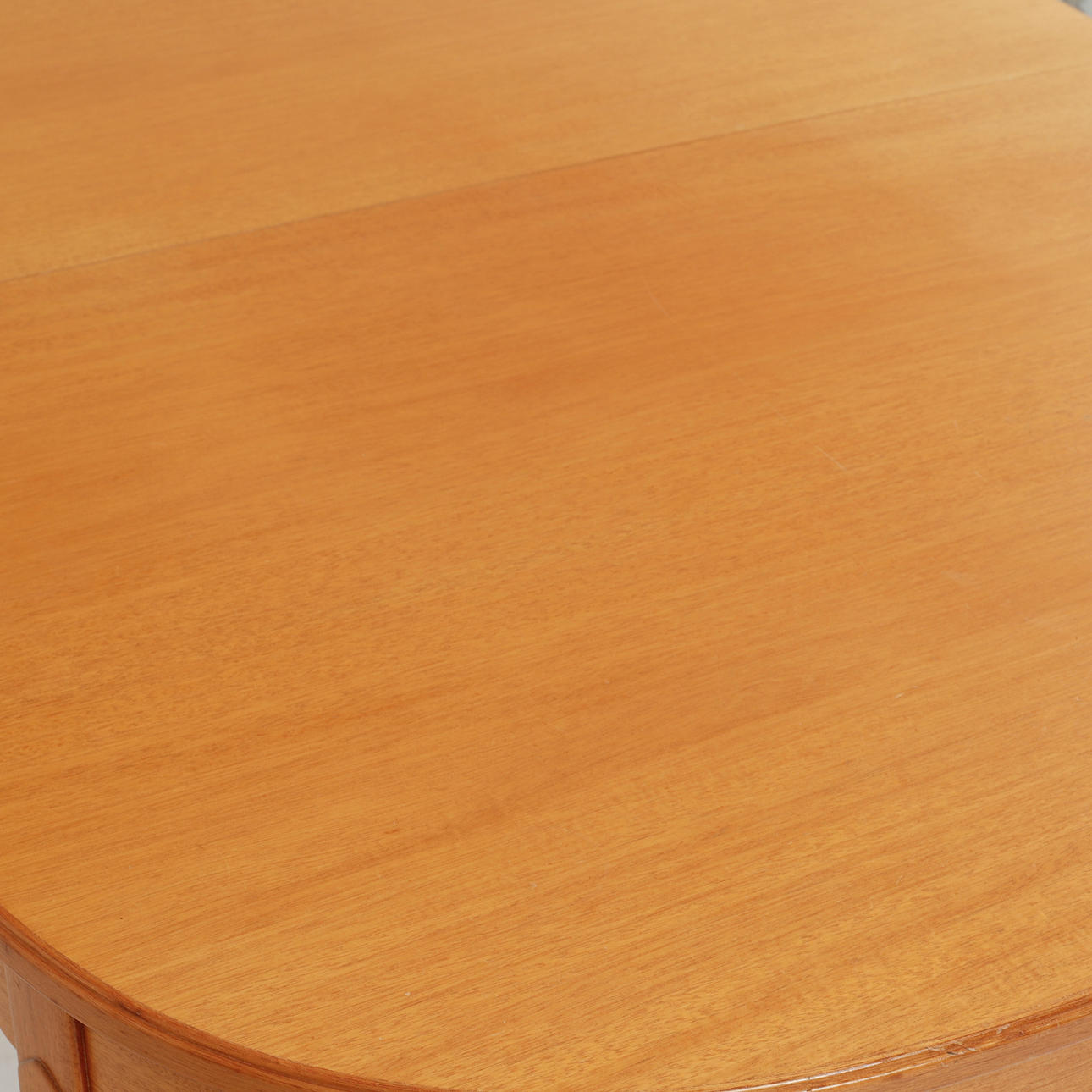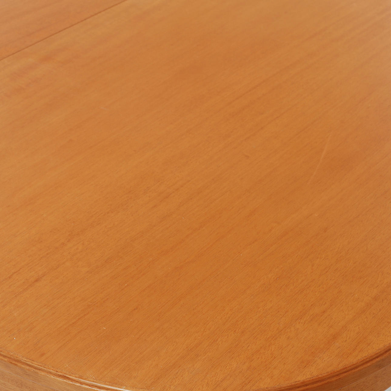 Valnöt, bord längd 161 cm + 3 iläggskivor á 58 cm, bredd 112 cm, höjd 75 cm, 8 stolar.