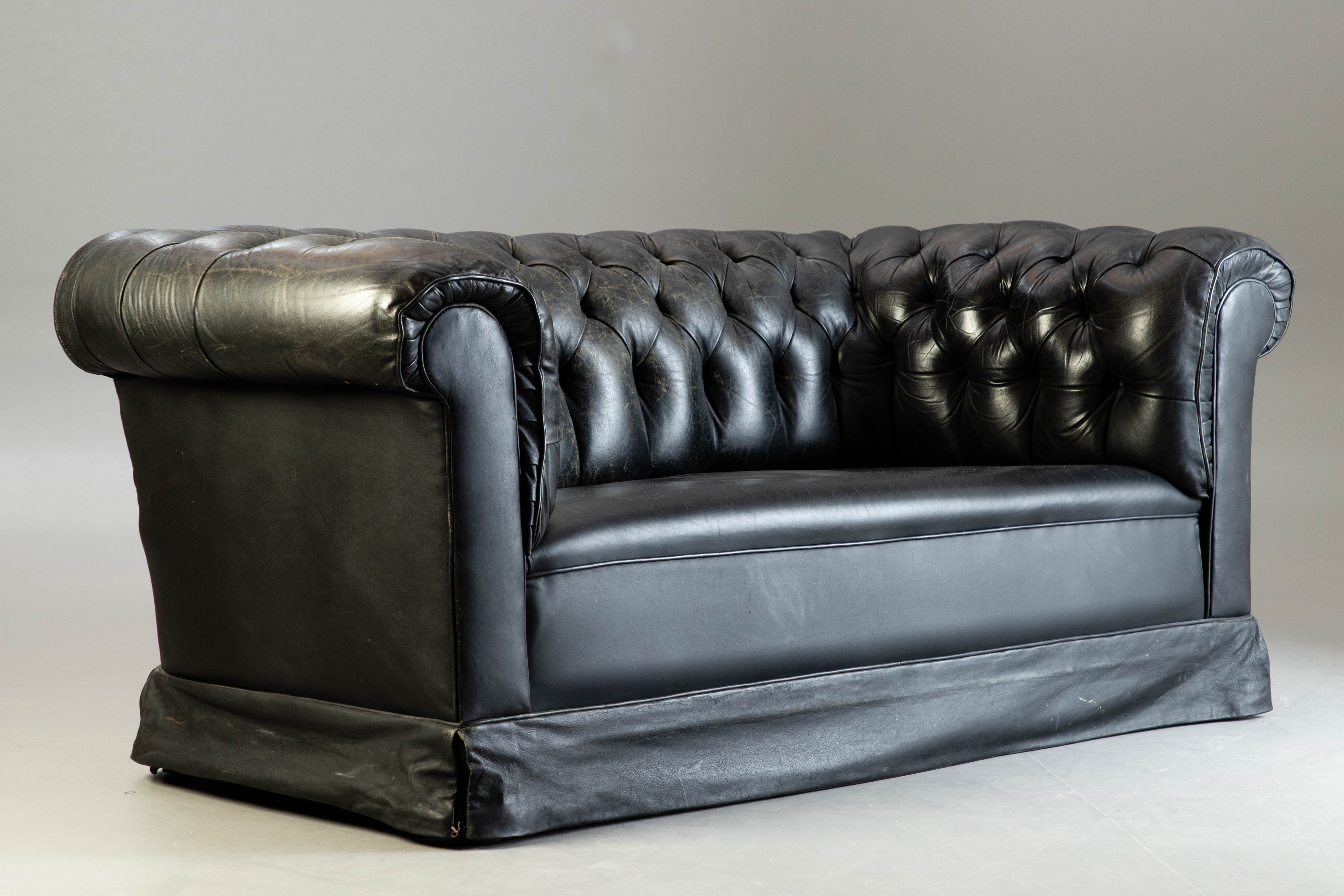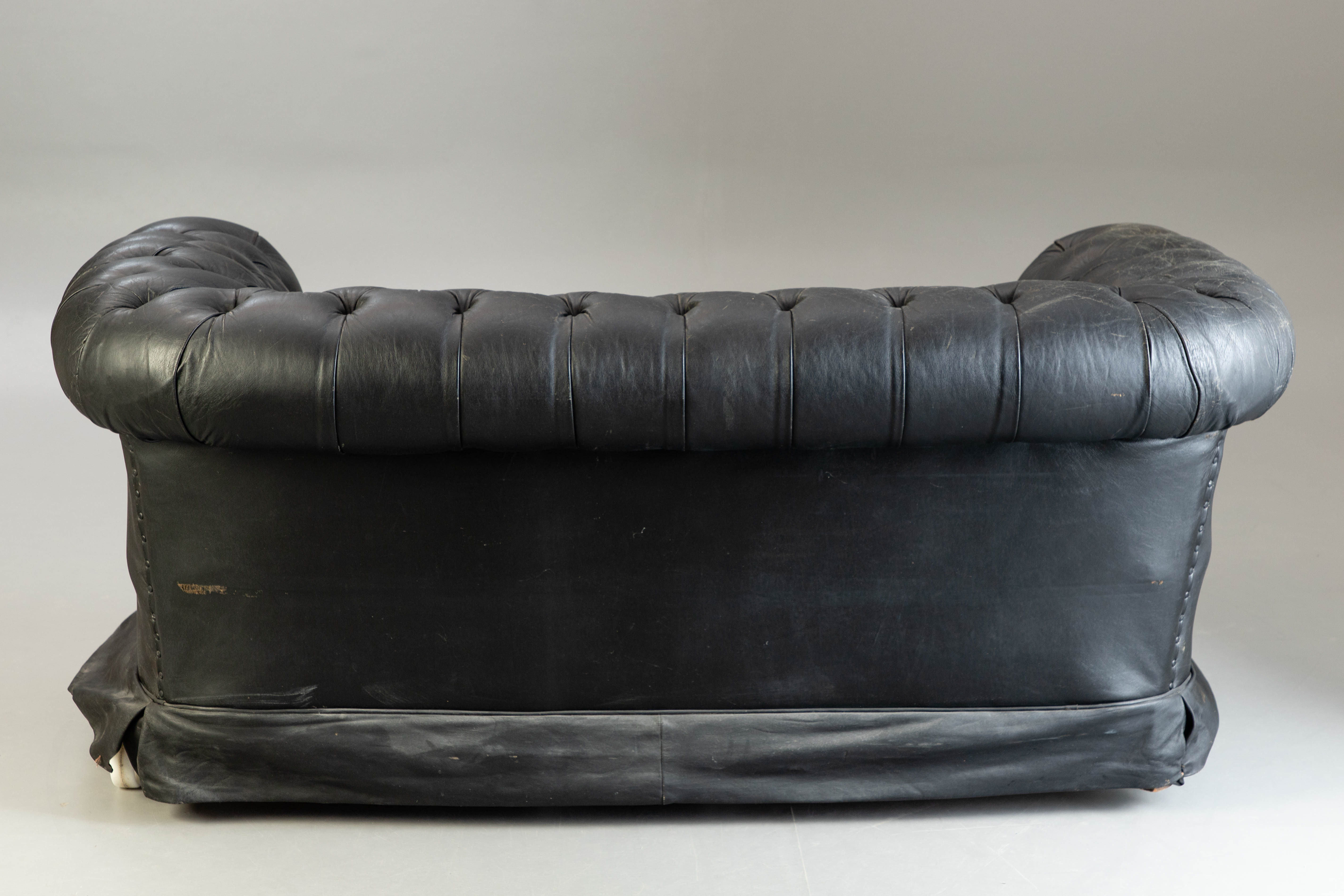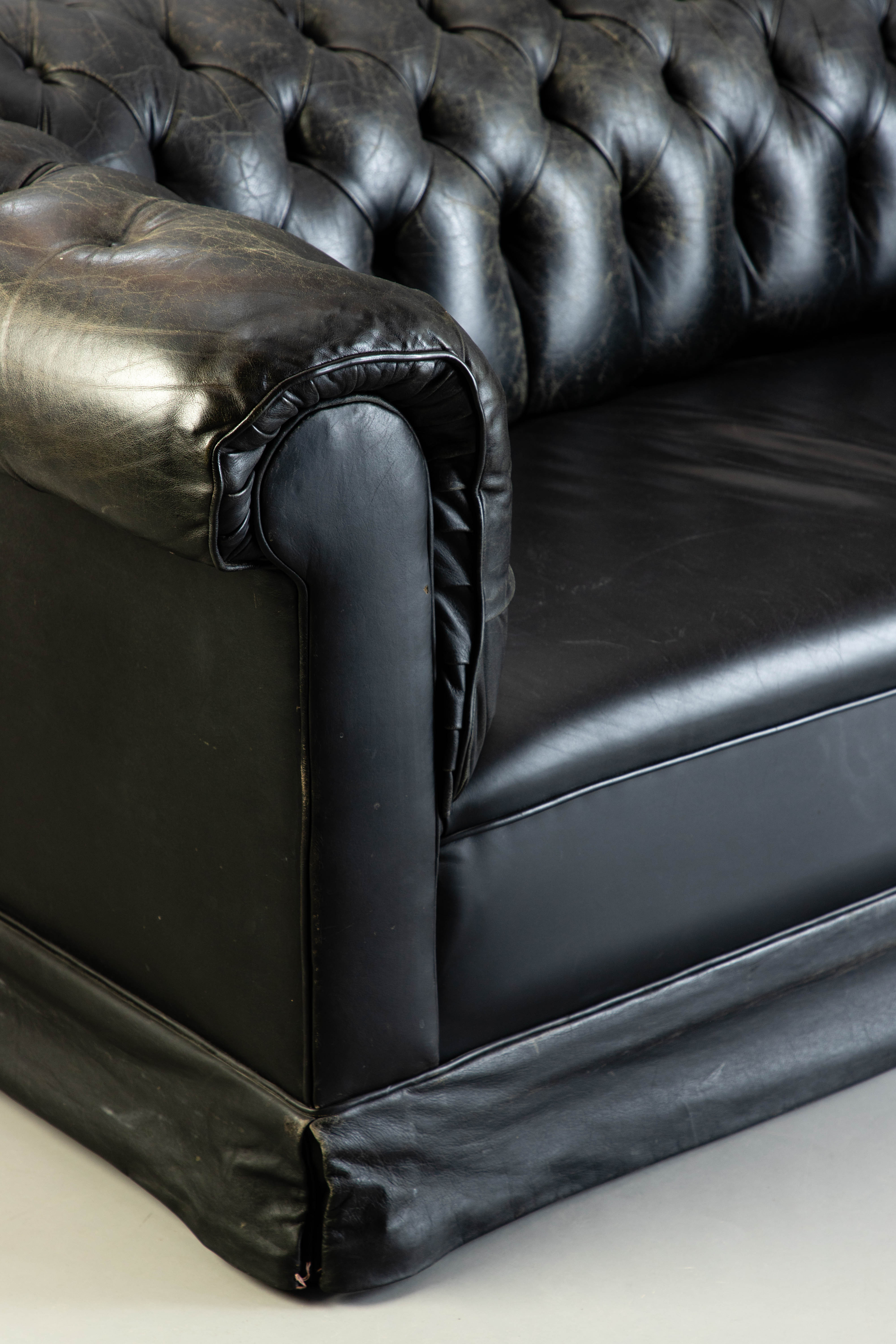2018742. Chesterfield soffa, svart läder.