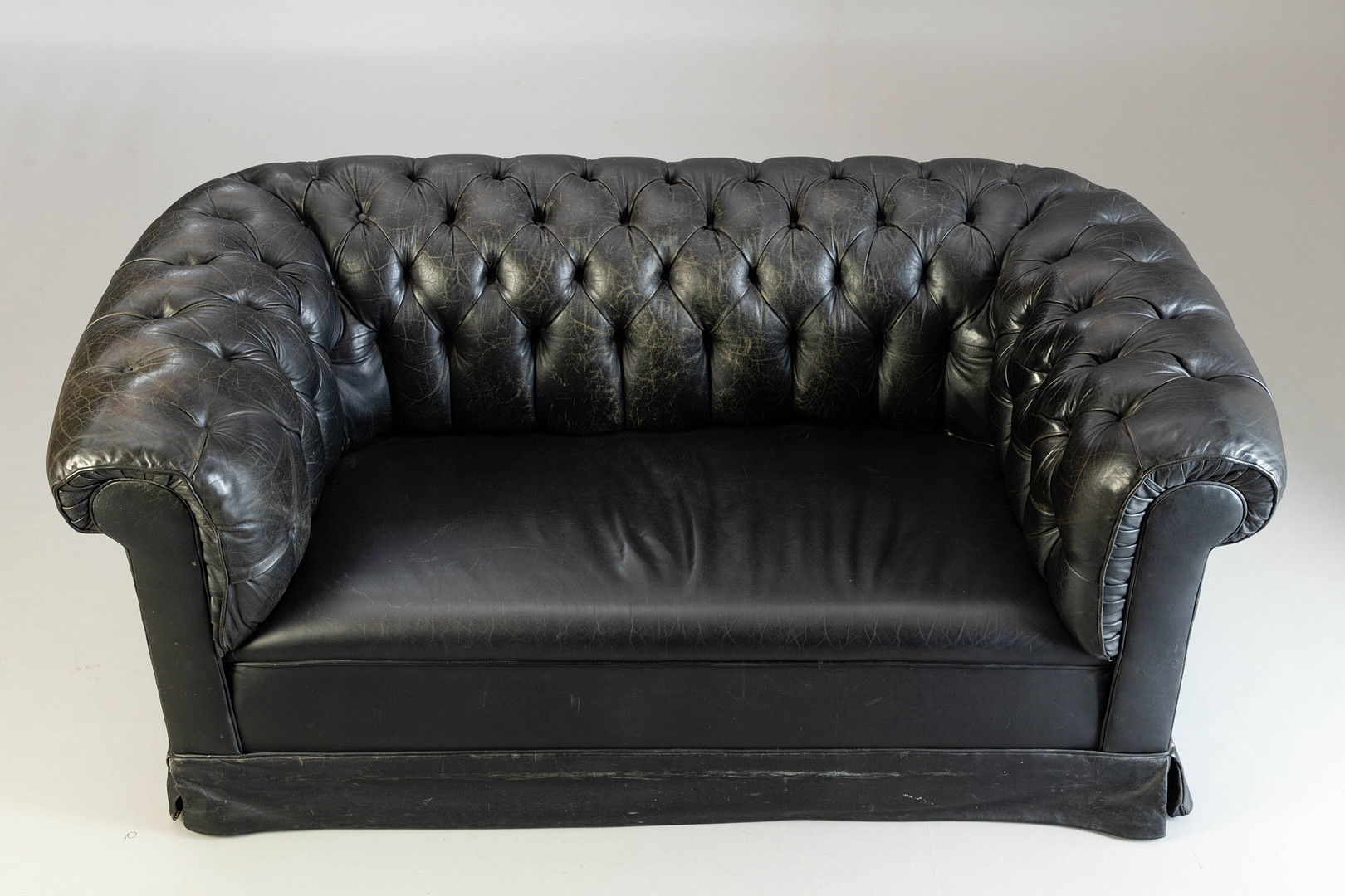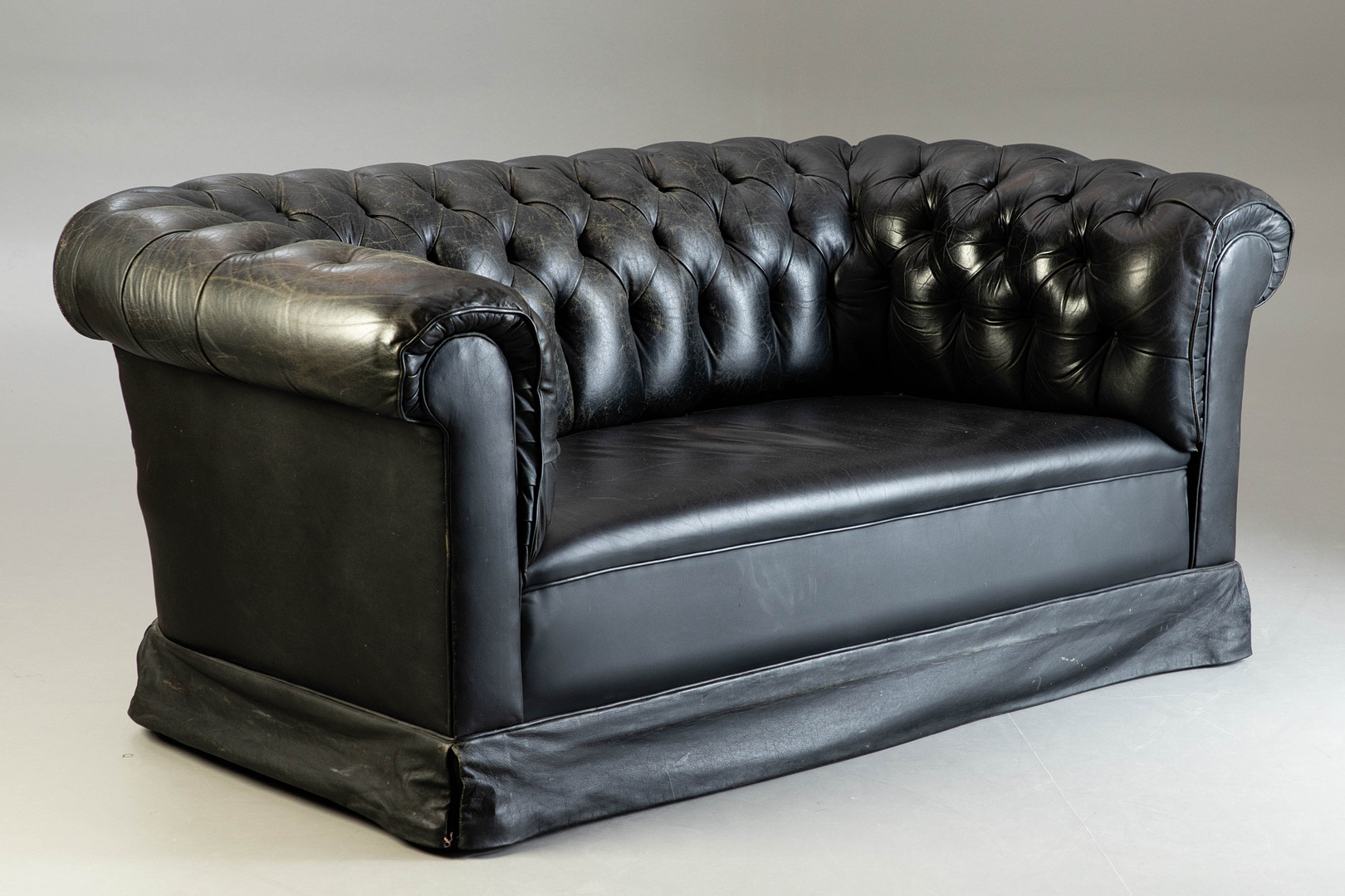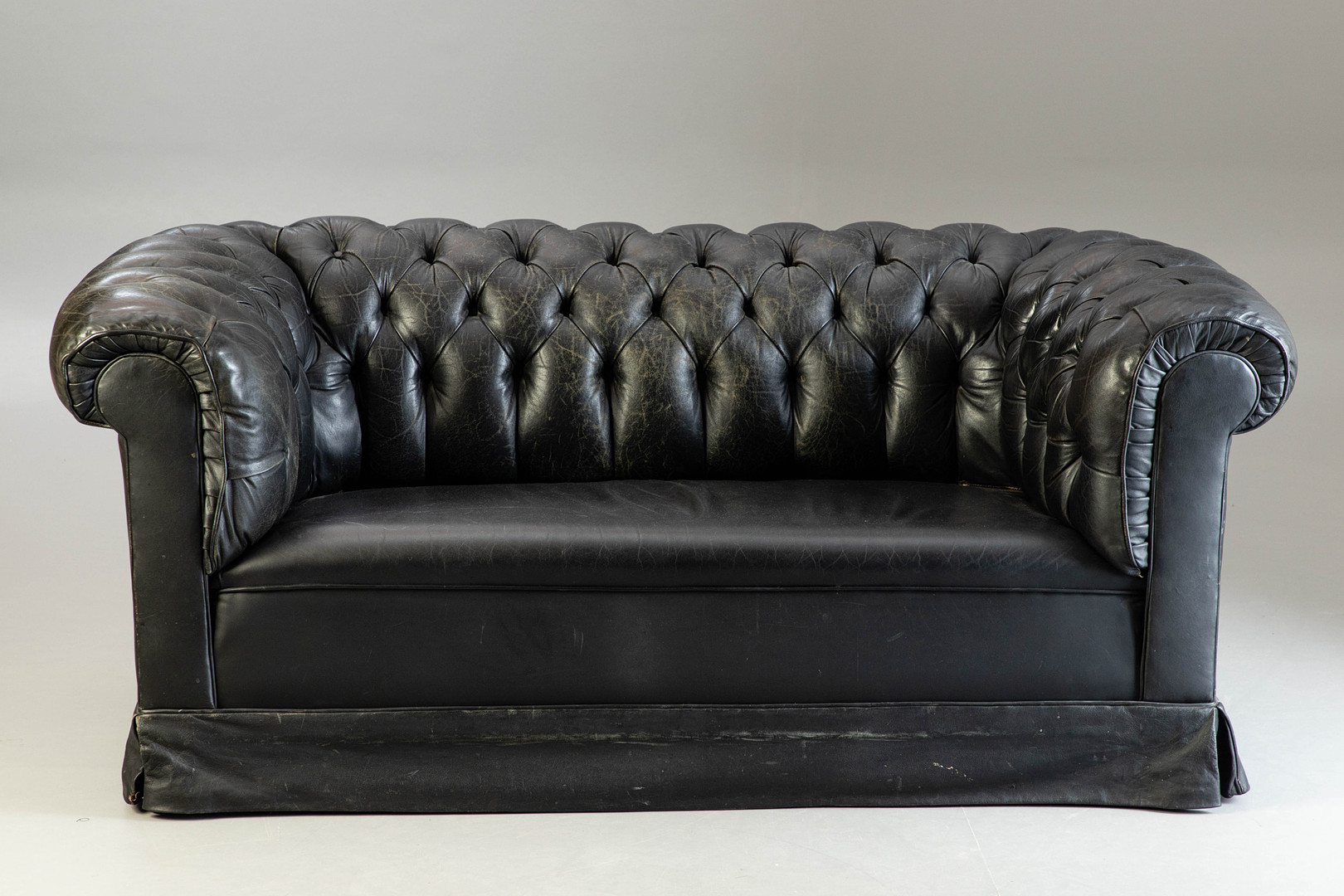 2018742. Chesterfield soffa, svart läder.