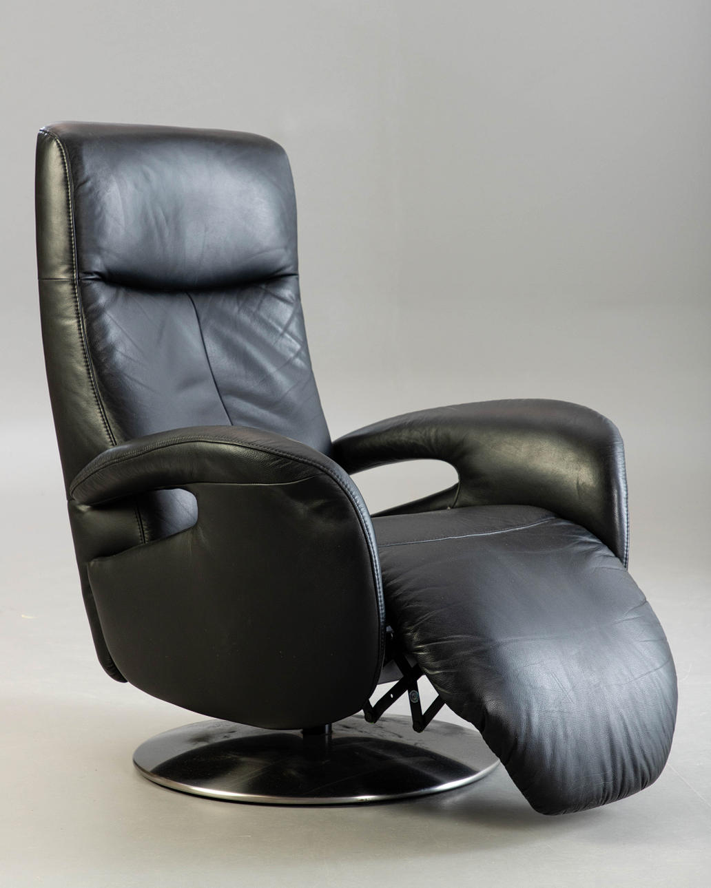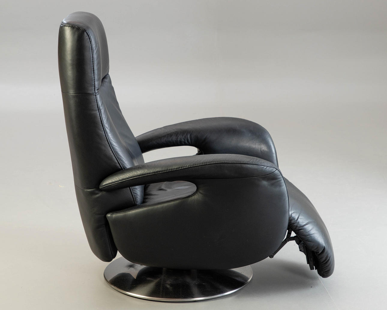 2020507. Hukla fåtölj, svart läder.