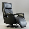 Hukla fåtölj, svart läder.