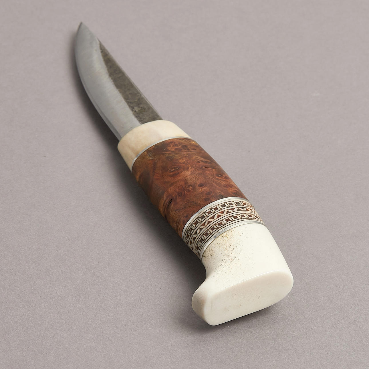 Bertil Fällman, Piteå f. 1920. Vid pensionen 1985 började Bertil slöjda knivar, gärna med tillhörande boxar.