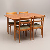 Bord höjd 74, storlek 105x95 cm. Extra skiva á 23,5 cm. Stolar 4 st, höjd 82, sitthöjd 44 cm.