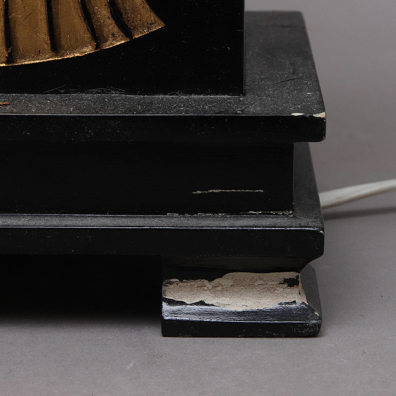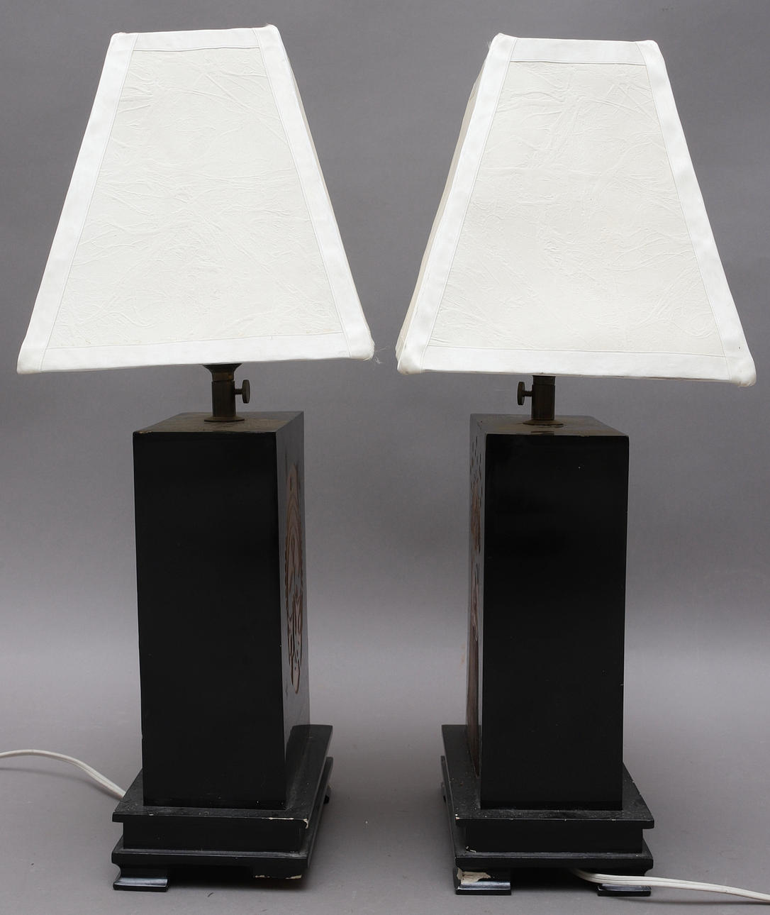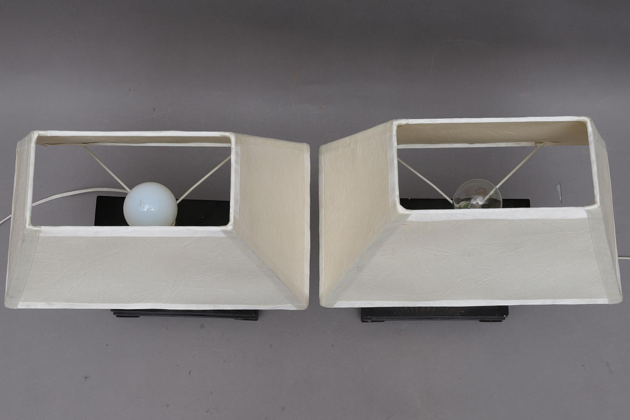 Avslag på en fot på ena lampan, flertal nagg & skador. Fungerade vid katalogiseringstillfället. Ingen funktionsgaranti lämnas.