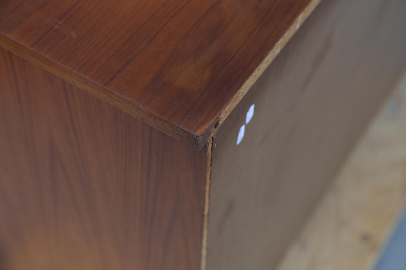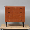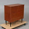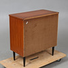 Teak, svärtade ben, längd ca. 82, bredd 41, höjd 85 cm.