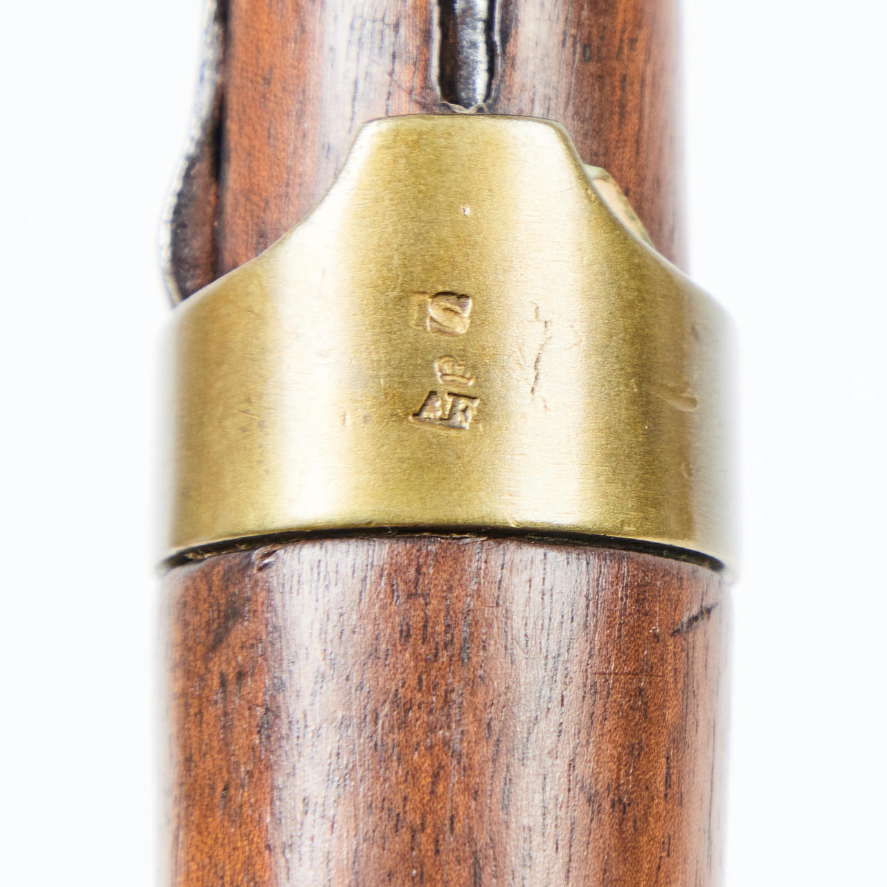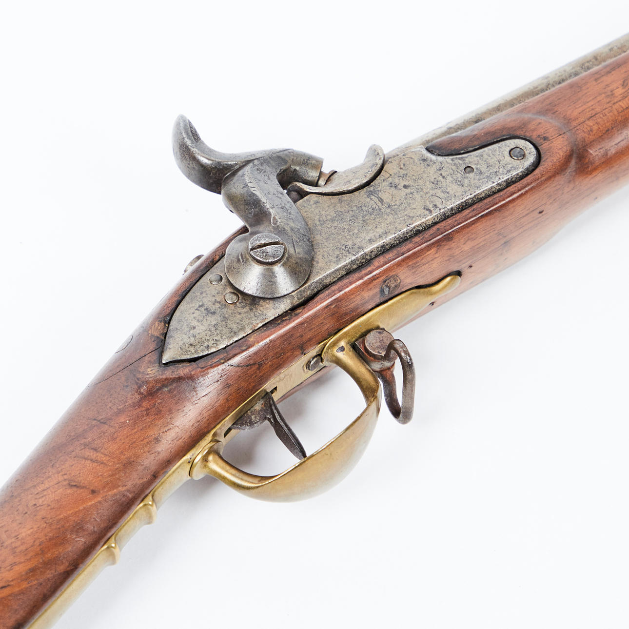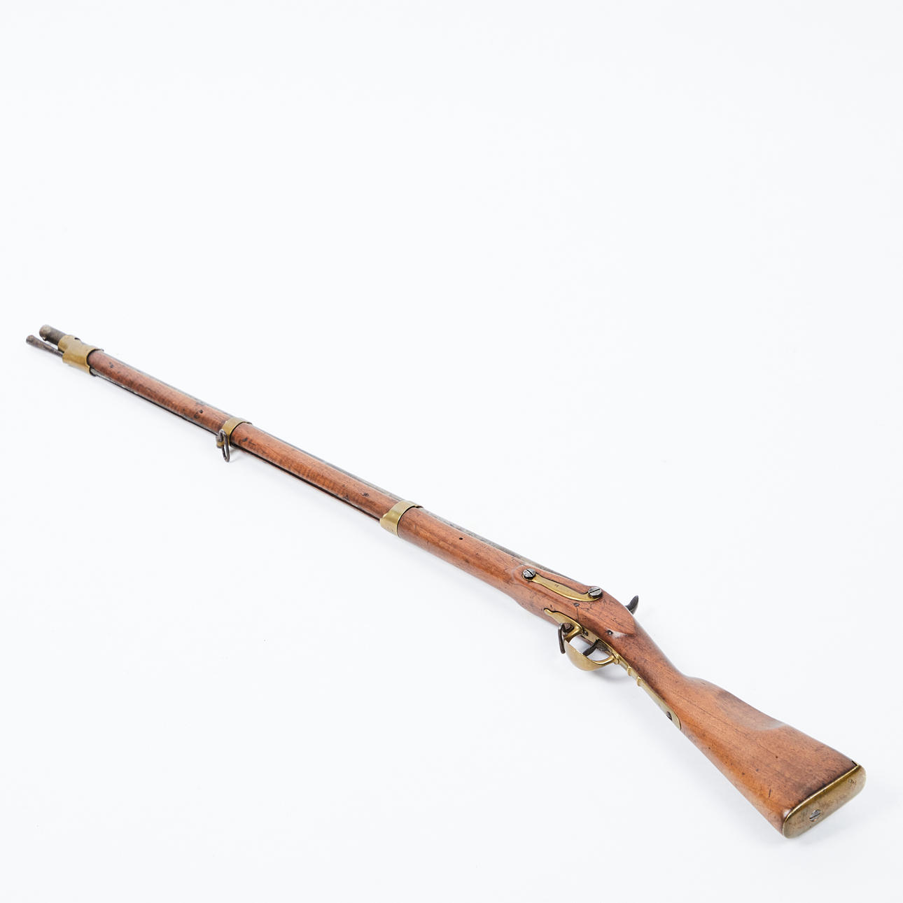 Kadetgevär, ca 1840, Tyskland. Gevär med en rund, slätväggig fat och slagverksmekanism, trälager med järnlist och ramrod, två remhållare, präglade flera gånger med 'AF' under 'krona', L.114cm.