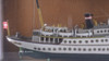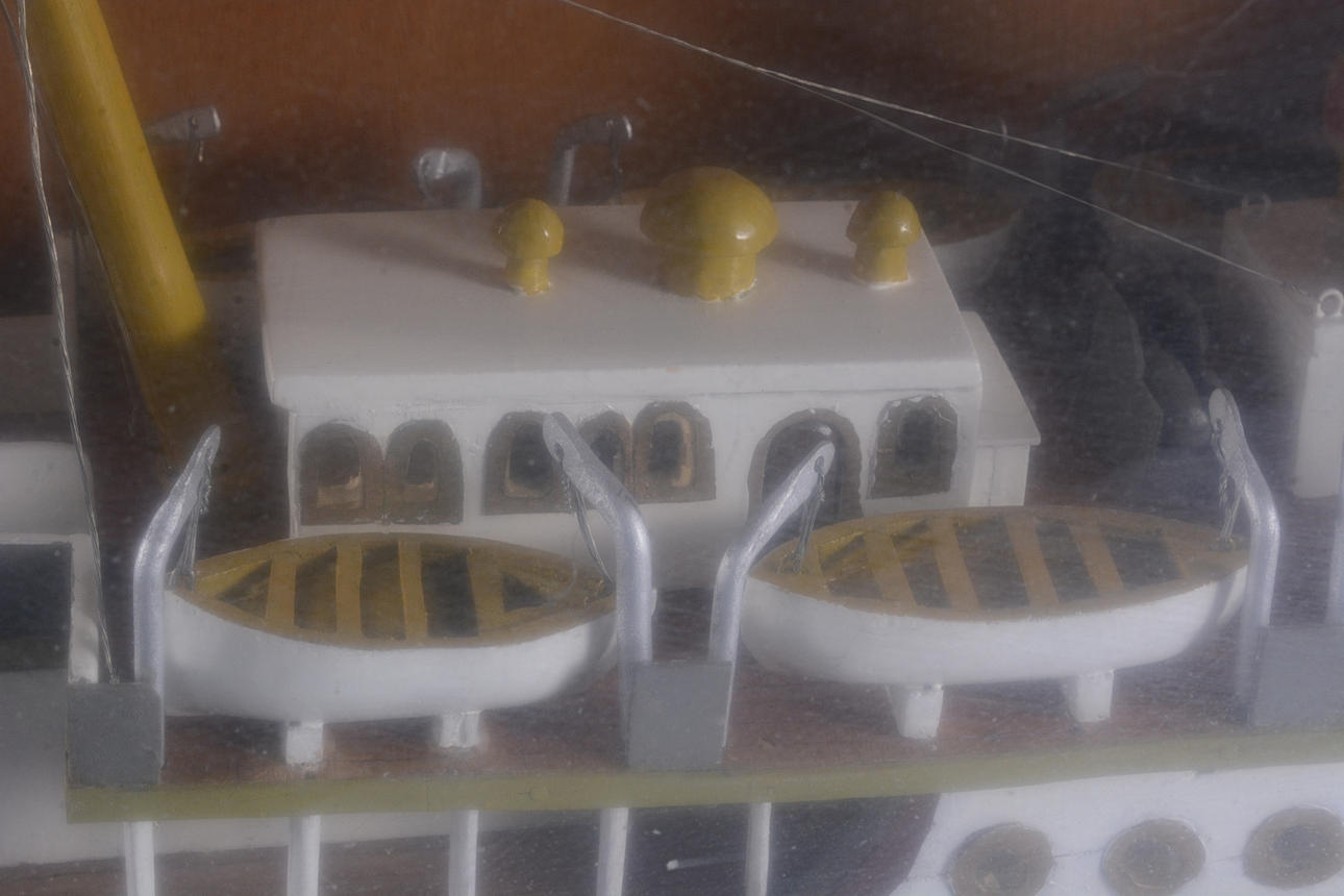 FARTYGSMODEL, bemålat trä i glasmonter, "Dannebrog".