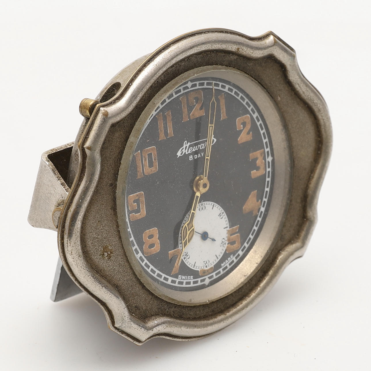 1920-tal, rund 45mm urtavla med självlysande siffror, visare och sekunddotterbolag, signerad Stewart 8 day,