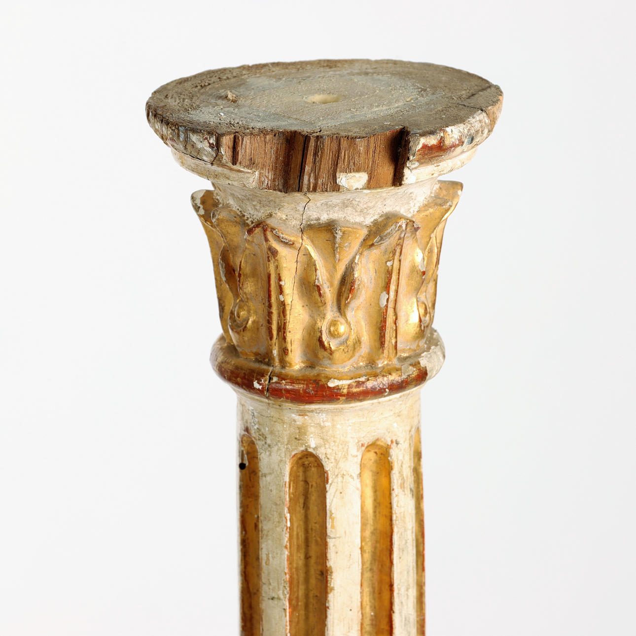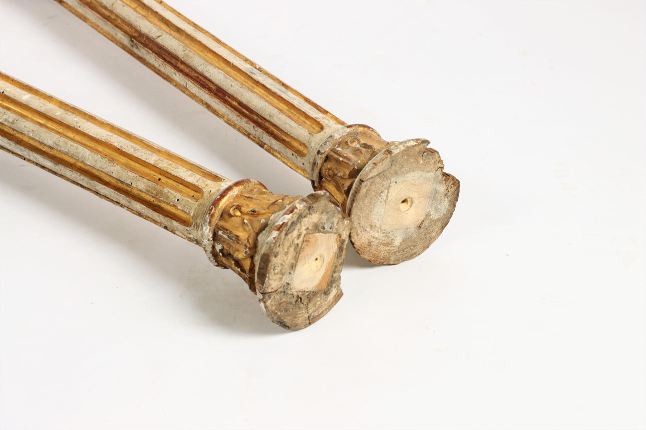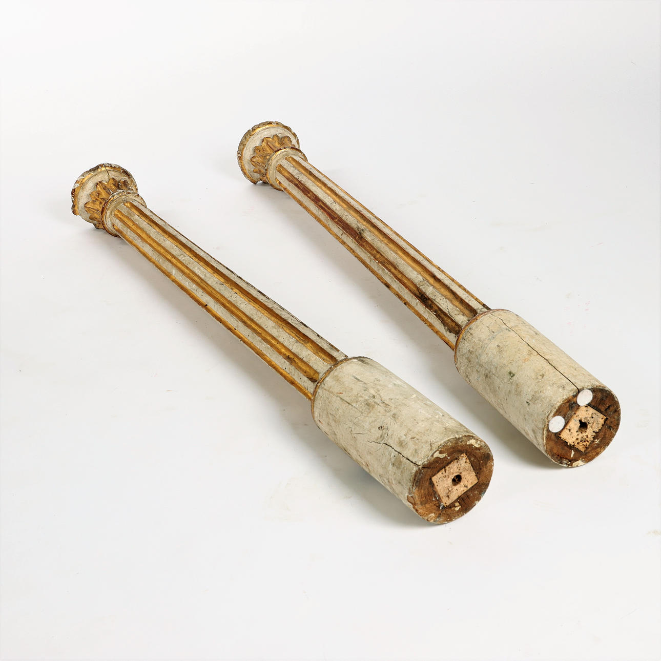 1 par mindre kolonner, byggelement, kannelerat, skuret, delvis förgyllt trä. Sydeuropa, 1700-talets andra hälft.