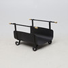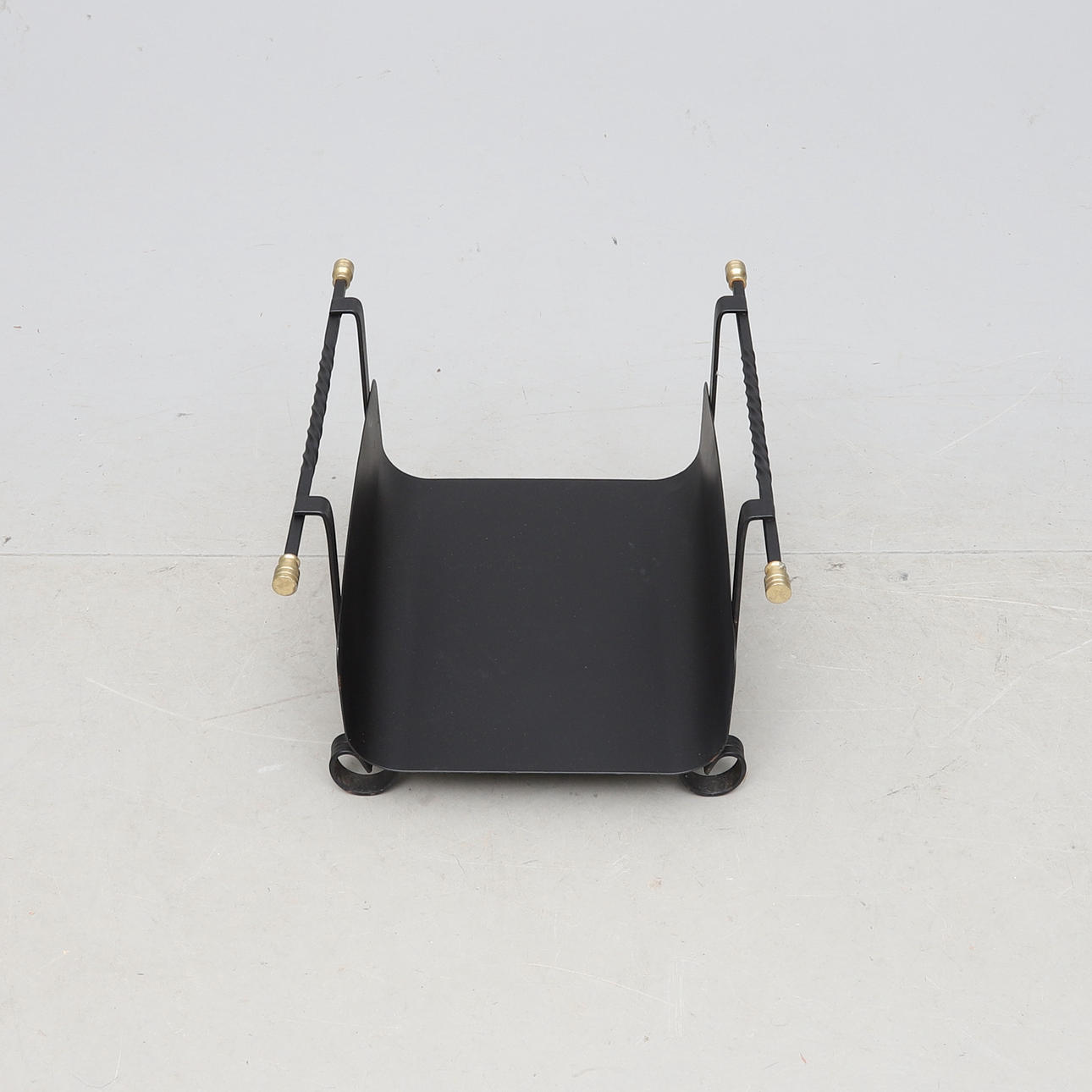 Svartlackerad metall/smide. Detaljer i mässing. Längd ca 48, bredd 40, höjd 30 cm.