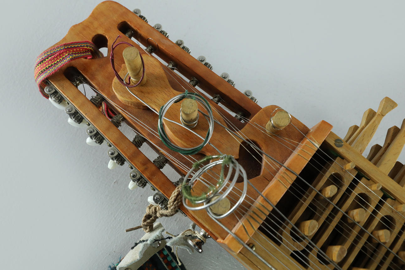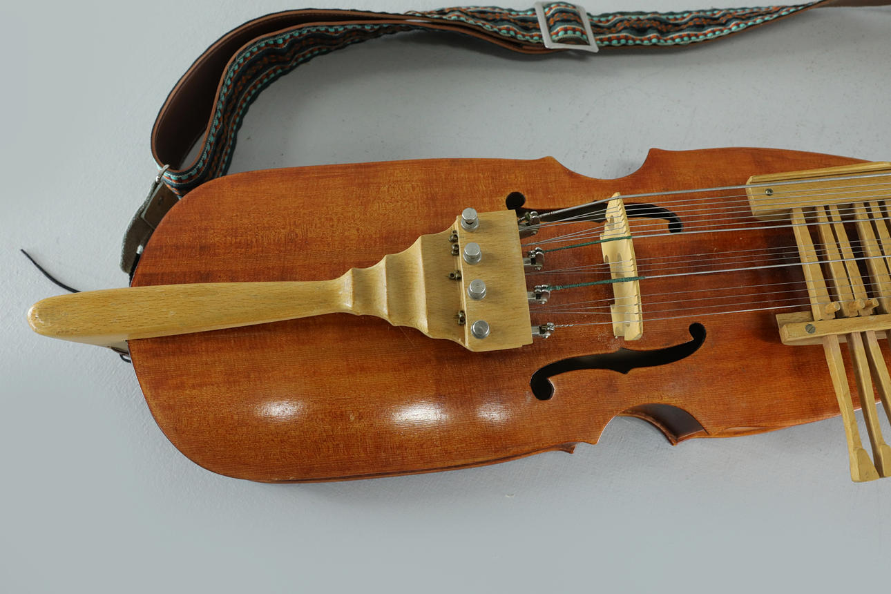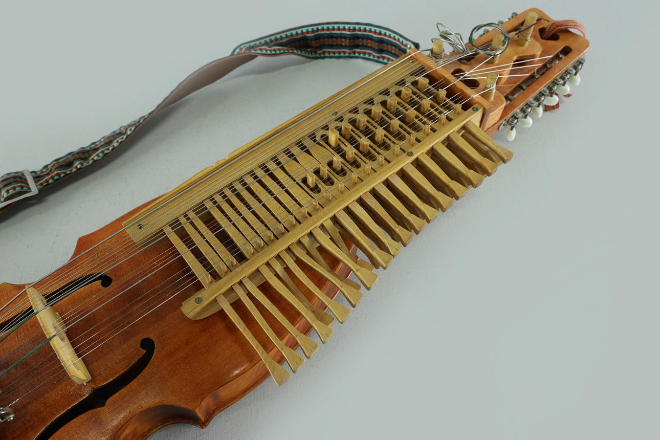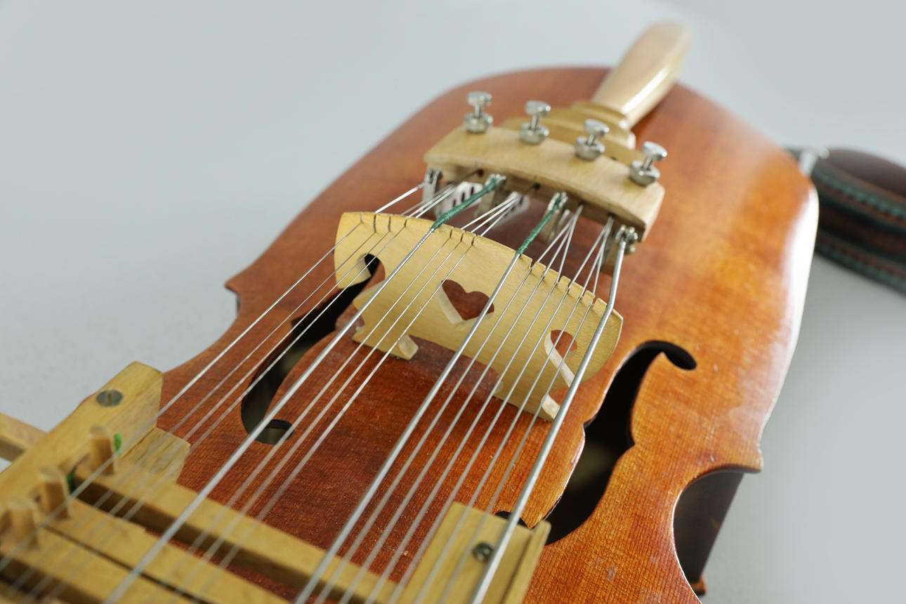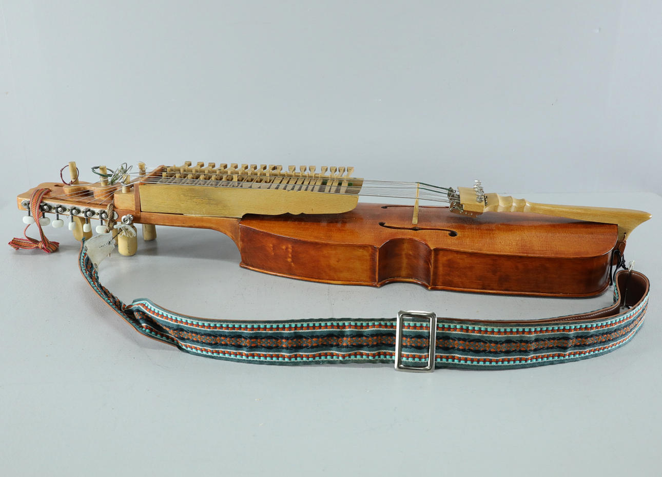 Längd 93 cm. Häfte " Spela Nyckelharpa 1" och kasettband medföljer.