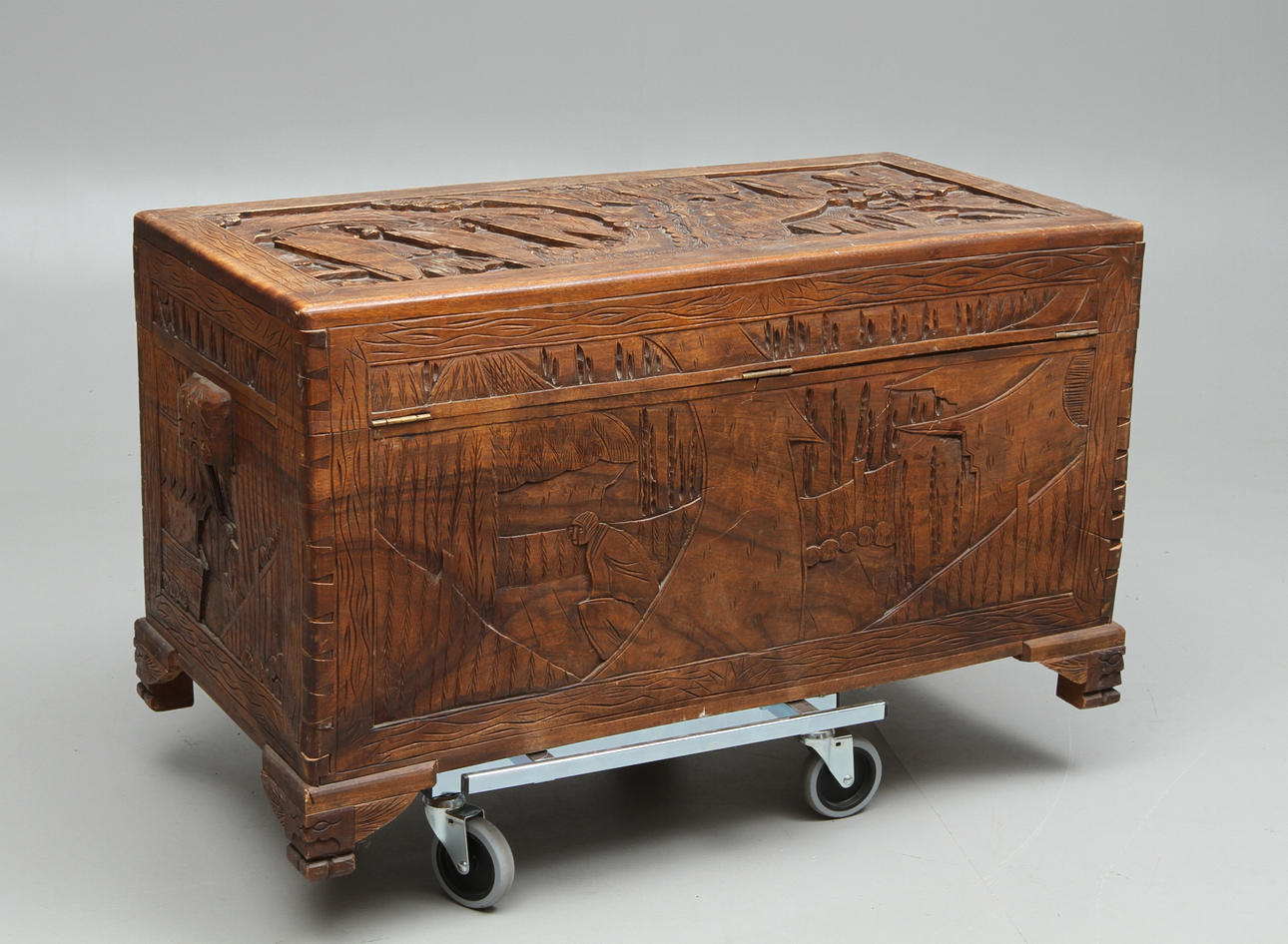 Skuren dekor, längd 101, bredd 50, höjd 58 cm.