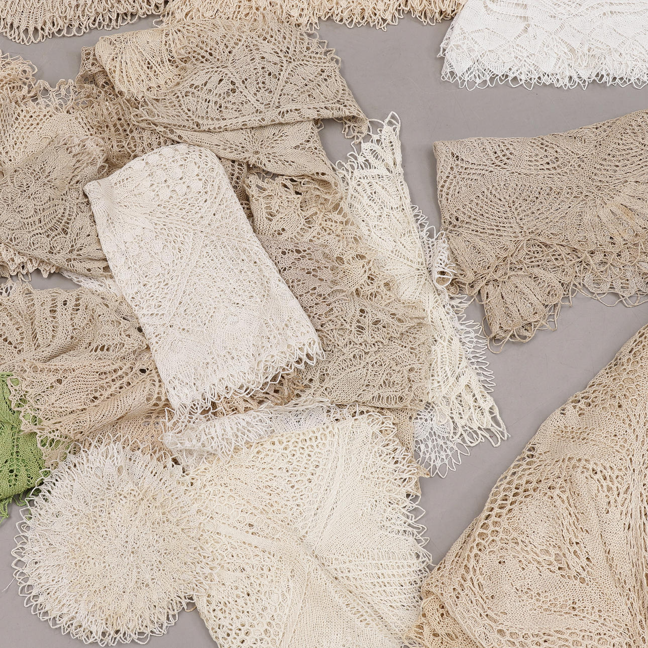 2033936. DUKAR, stickade, lin, bomull större parti.
