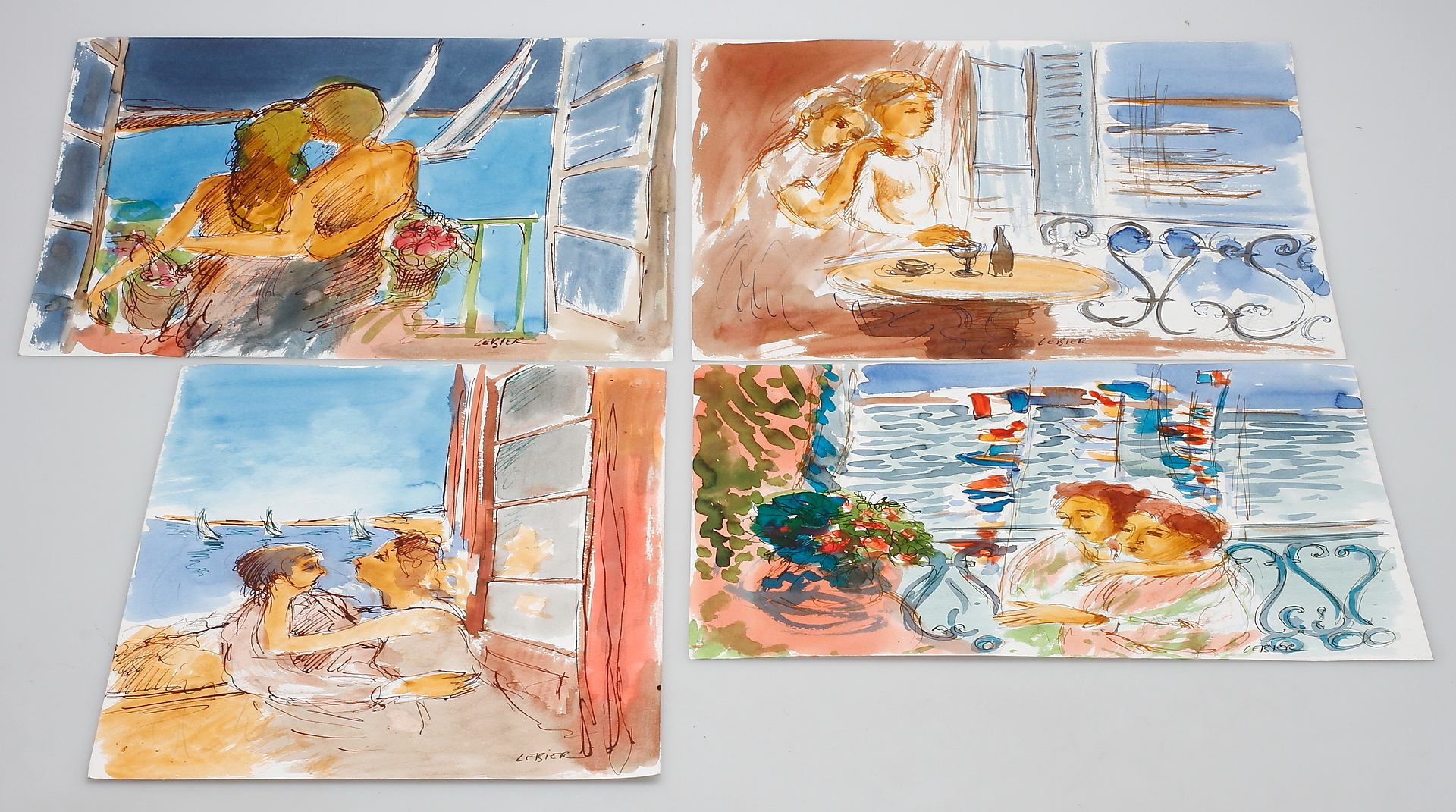 203603. DANIEL LEBIER. Blandteknik, 4 st, signerade.