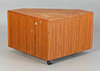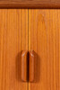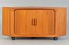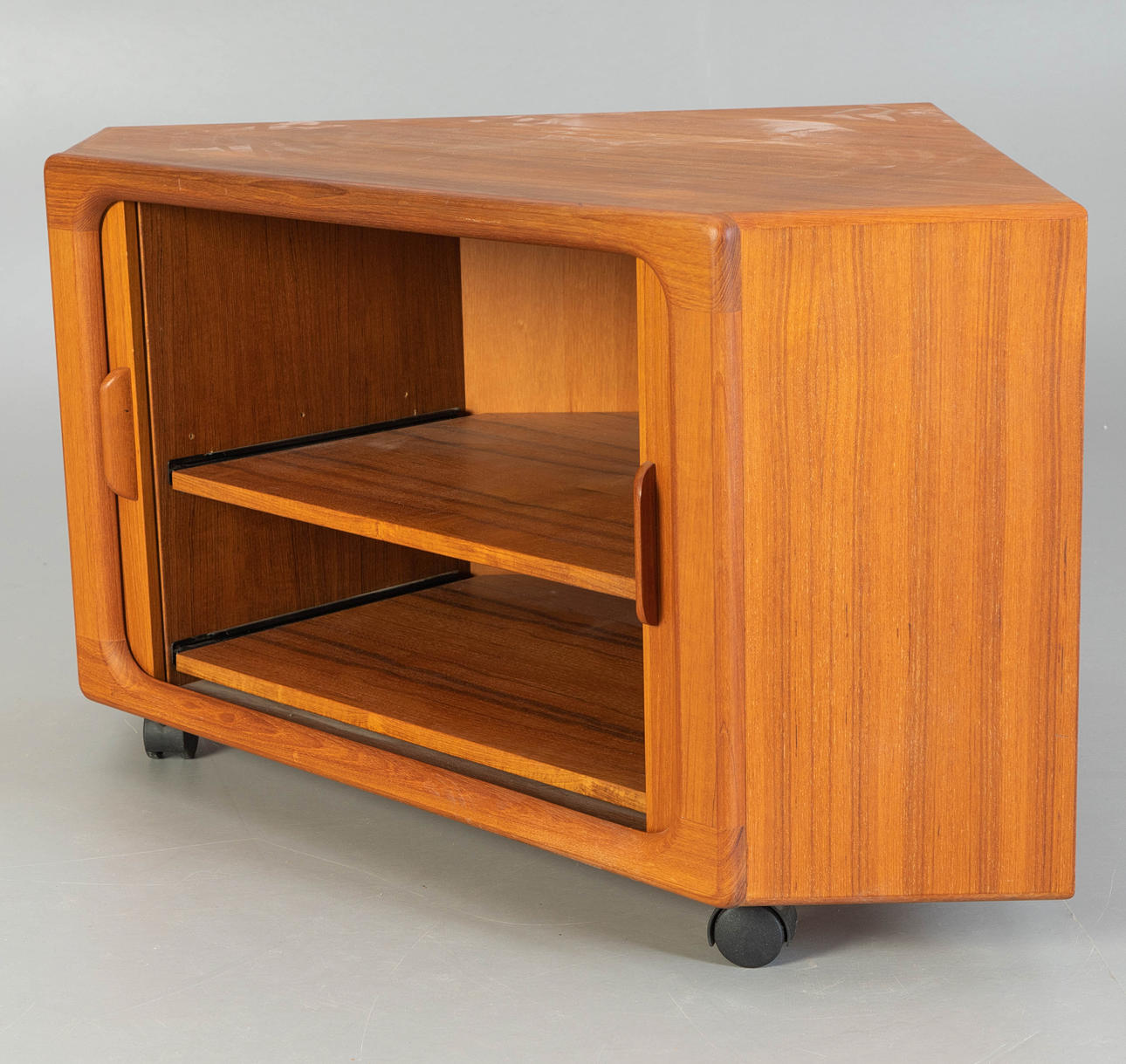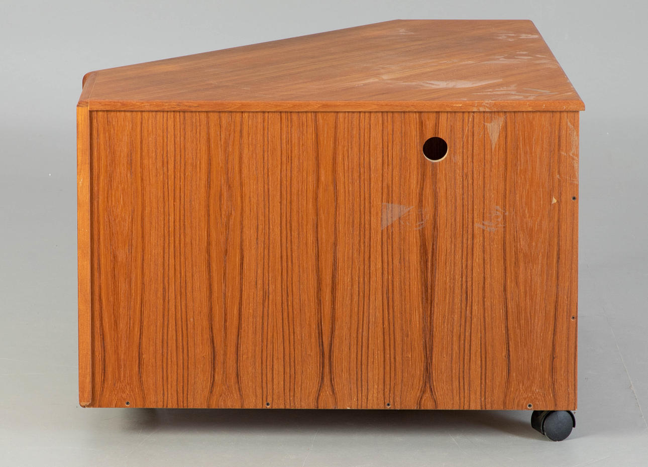 teak faner. På hjul, med blinda dörrar. HxBxD: 57x112x78 cm.