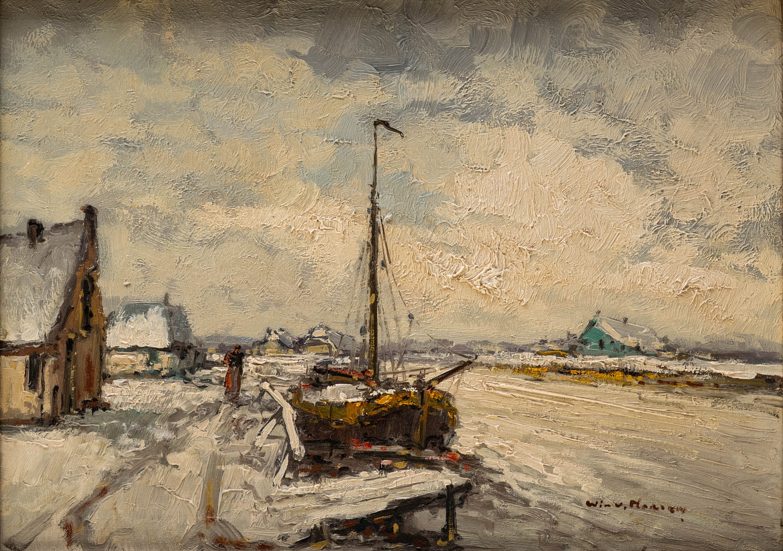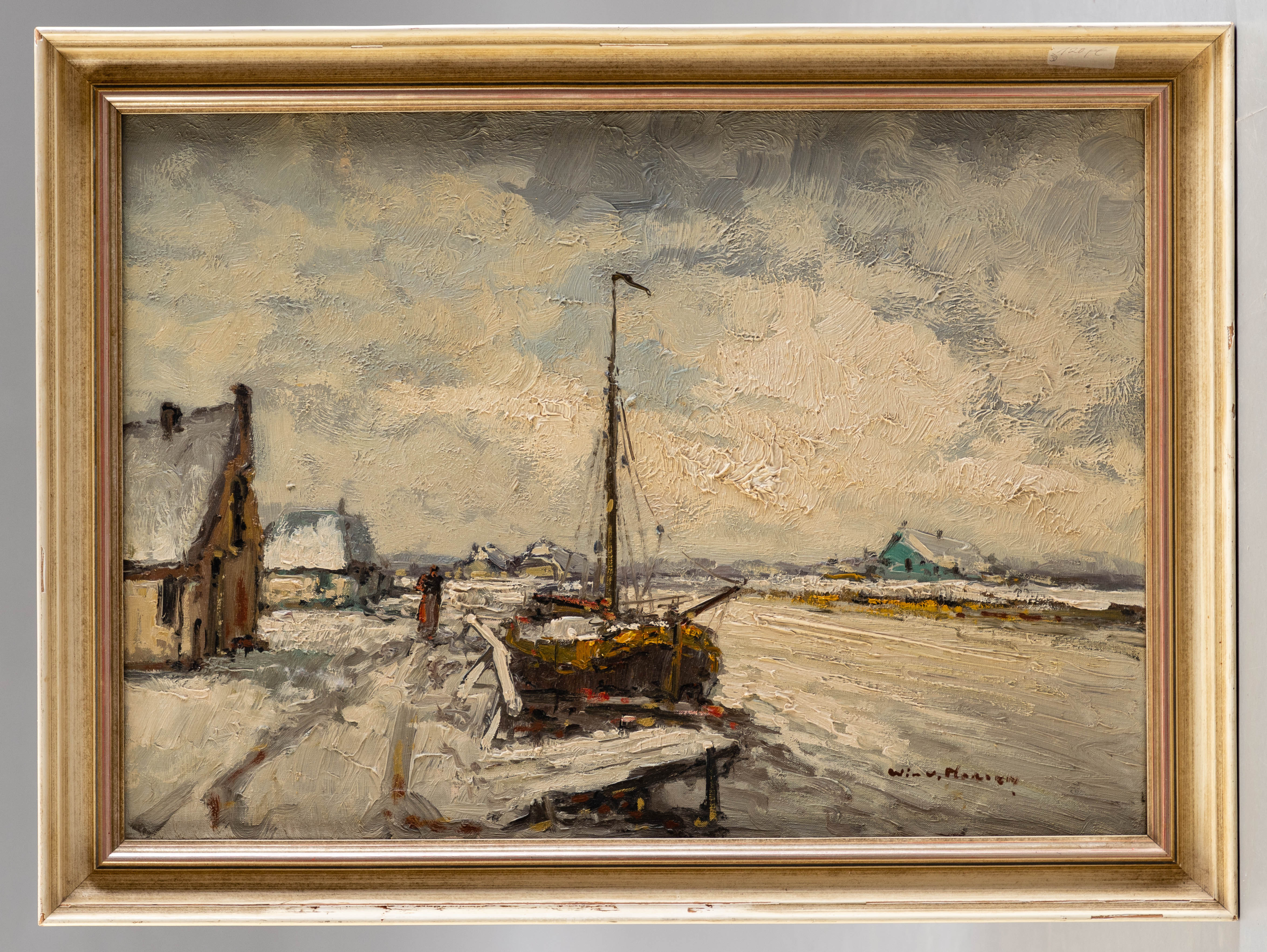 2044586. WIM VAN NORDEN (1917-2001). Båt brygga på vintern.