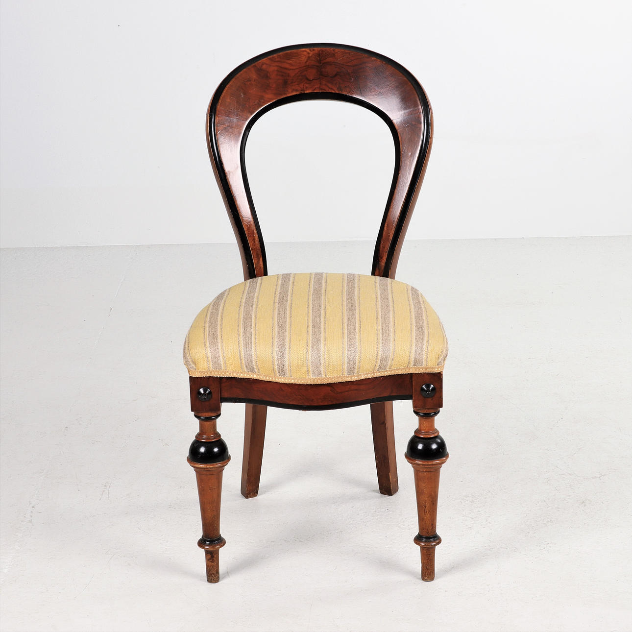 Stolar i mahogny och valnöt, Viktorianska, Danmark, 1800-talets mitt. Höjd 87 cm Sitthöjd 44 cm Bredd över rygg 42 cm.