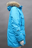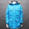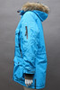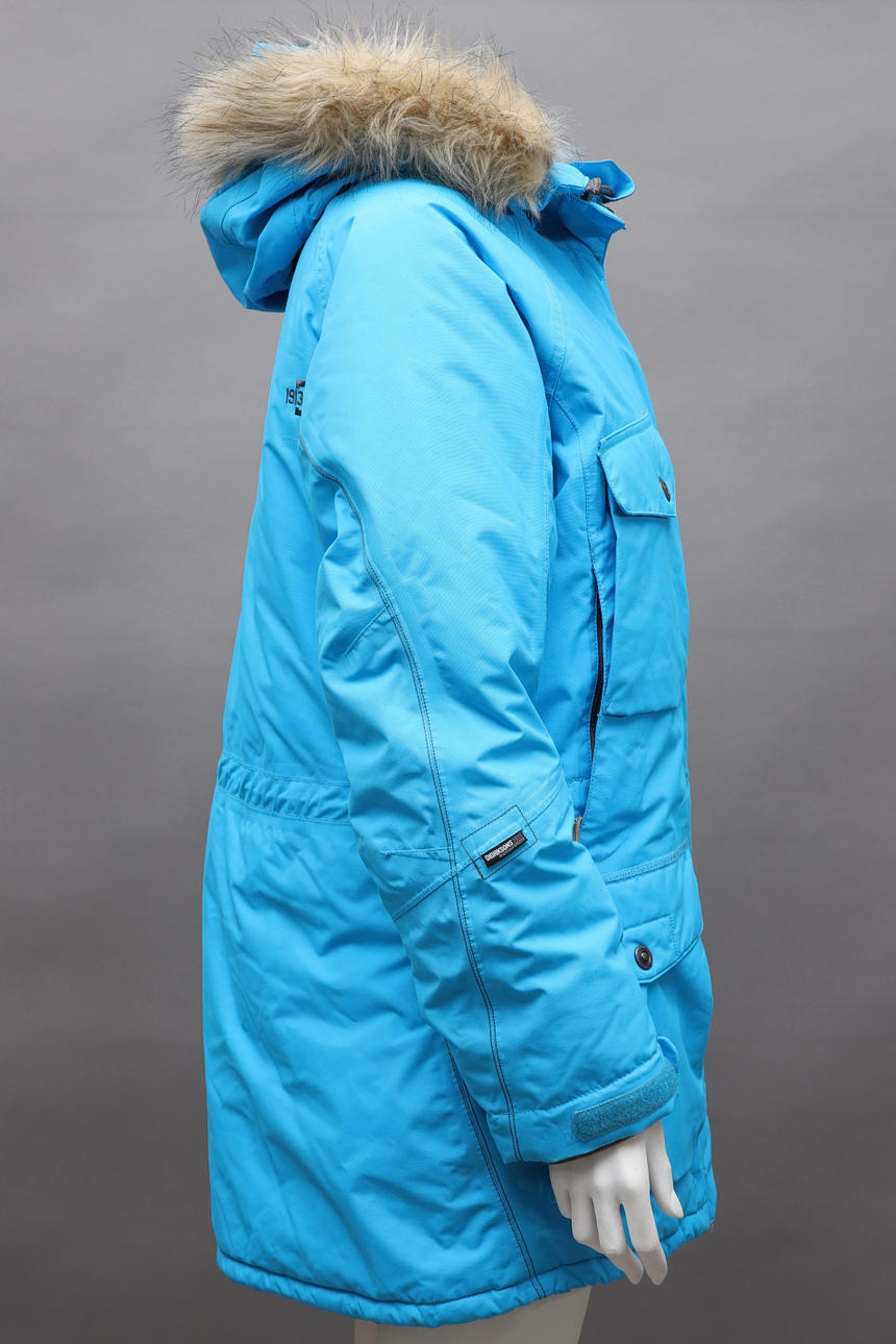 Turkosblå. 8 fickor. Muddar. Luva med avtagbar pälskant.