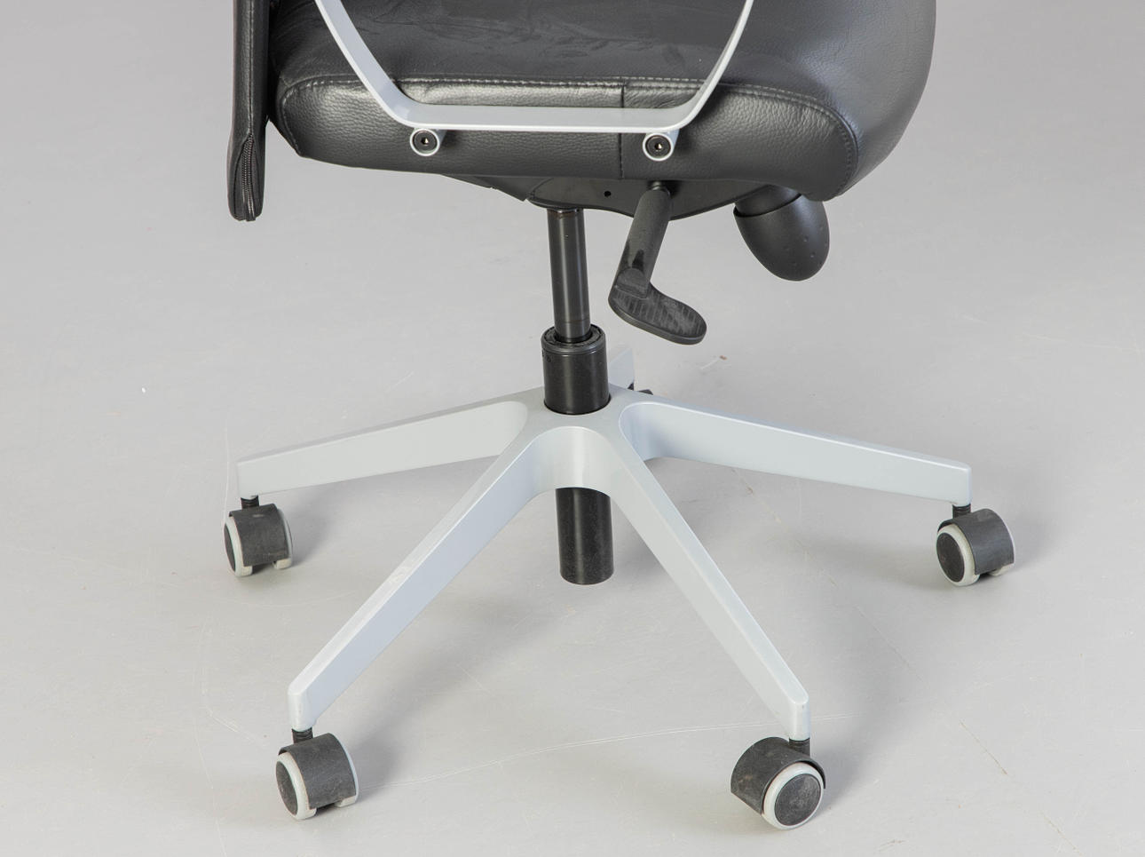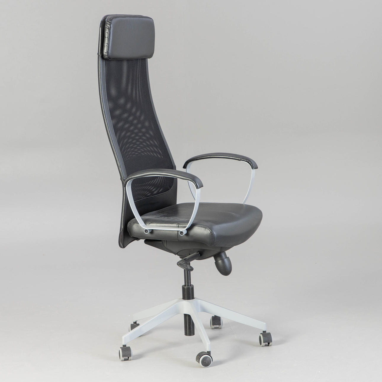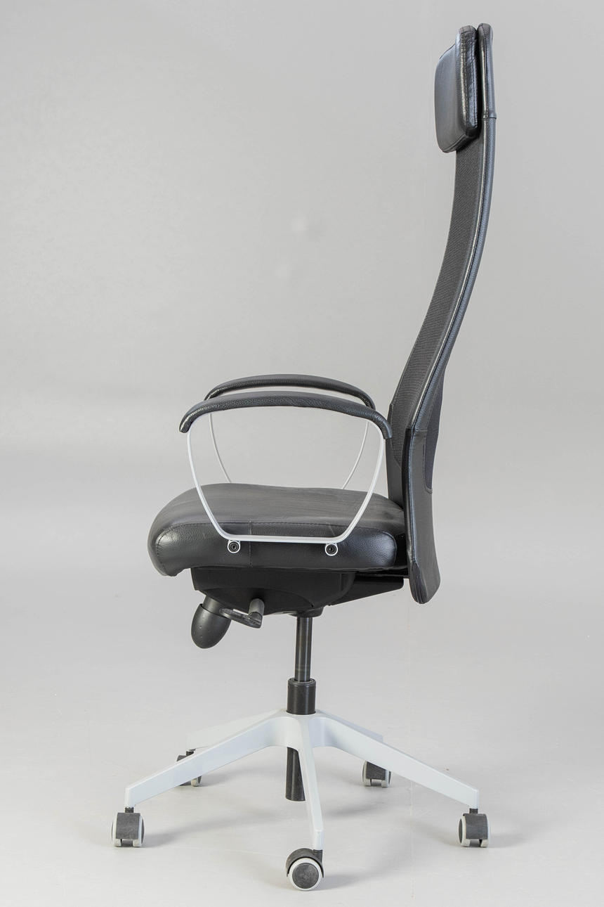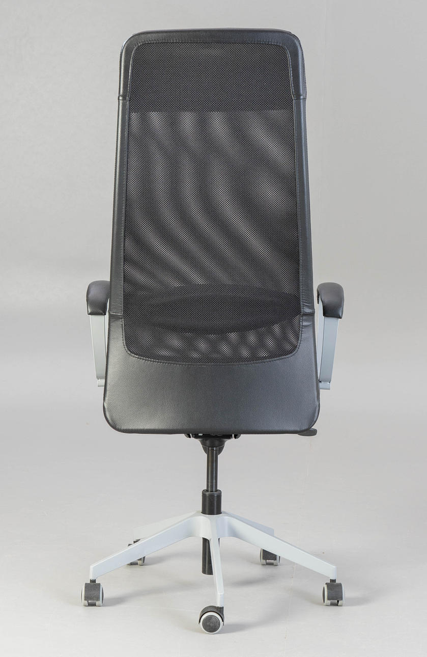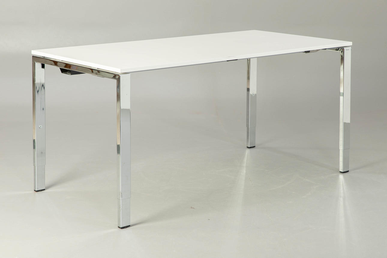 Höjdjusterbart skrivbord, förkromad, BxHxD: 160x61-75x80 cm, Markus kontorsstol, höjdjusterbar, konstläder, HxSh: 130-140x45-55 cm. Inskriven.