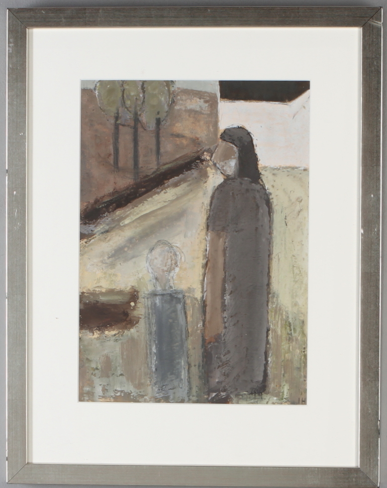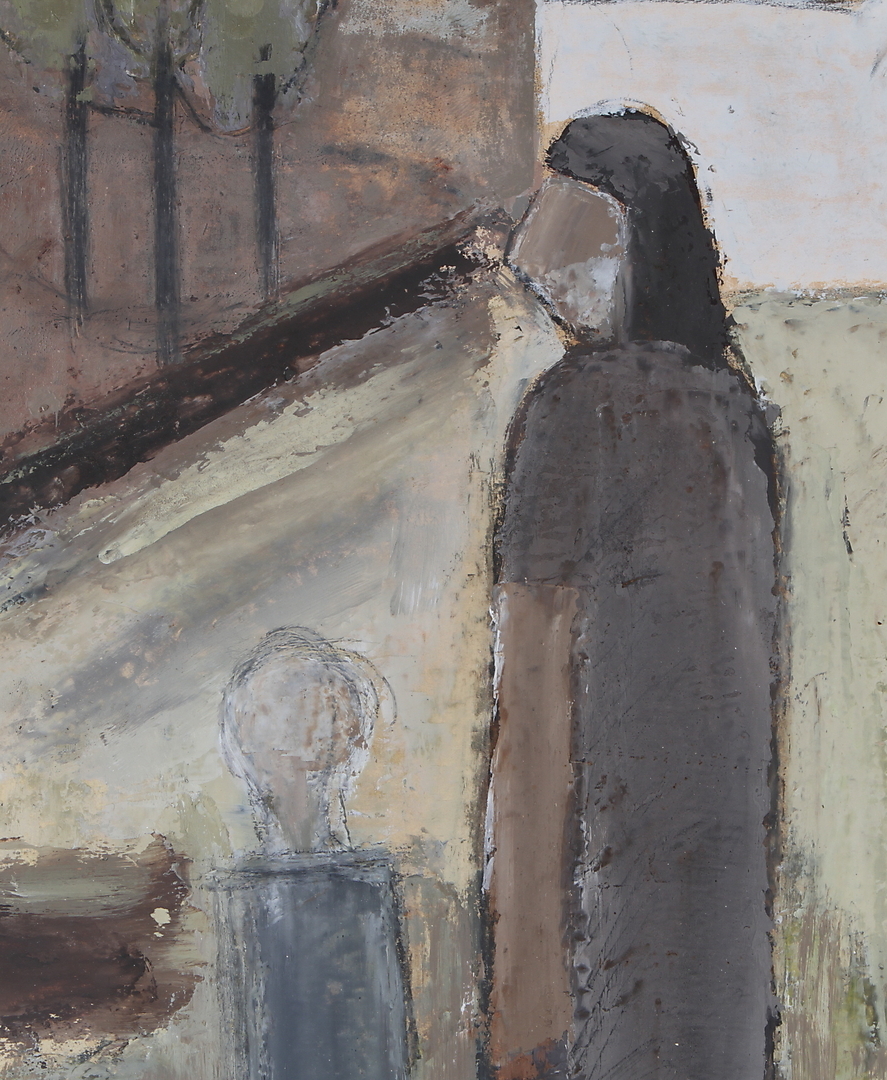 205002. JOHANNES HOFMEISTER. Figurkomposition, olja på papper, monogramsignerad.