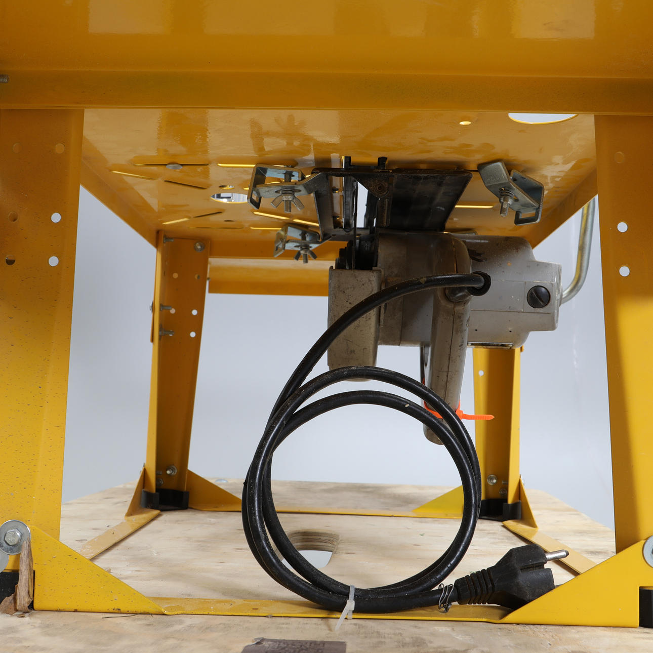 Bruksslitage, förberedd att montera en överhandsfräs.
