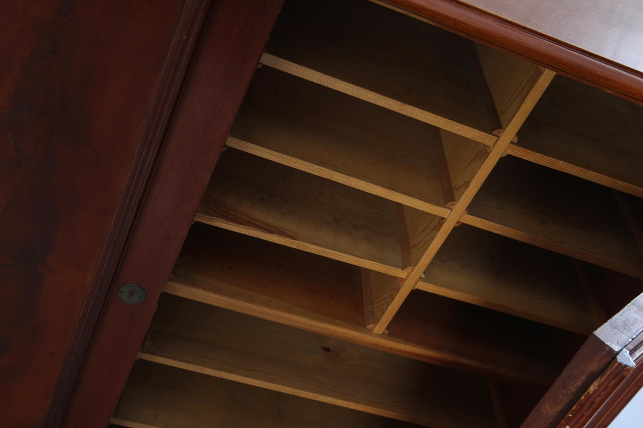 Mahogny. Två dörrar med fackinredning. Längd 125, bredd 40, höjd 105 cm.