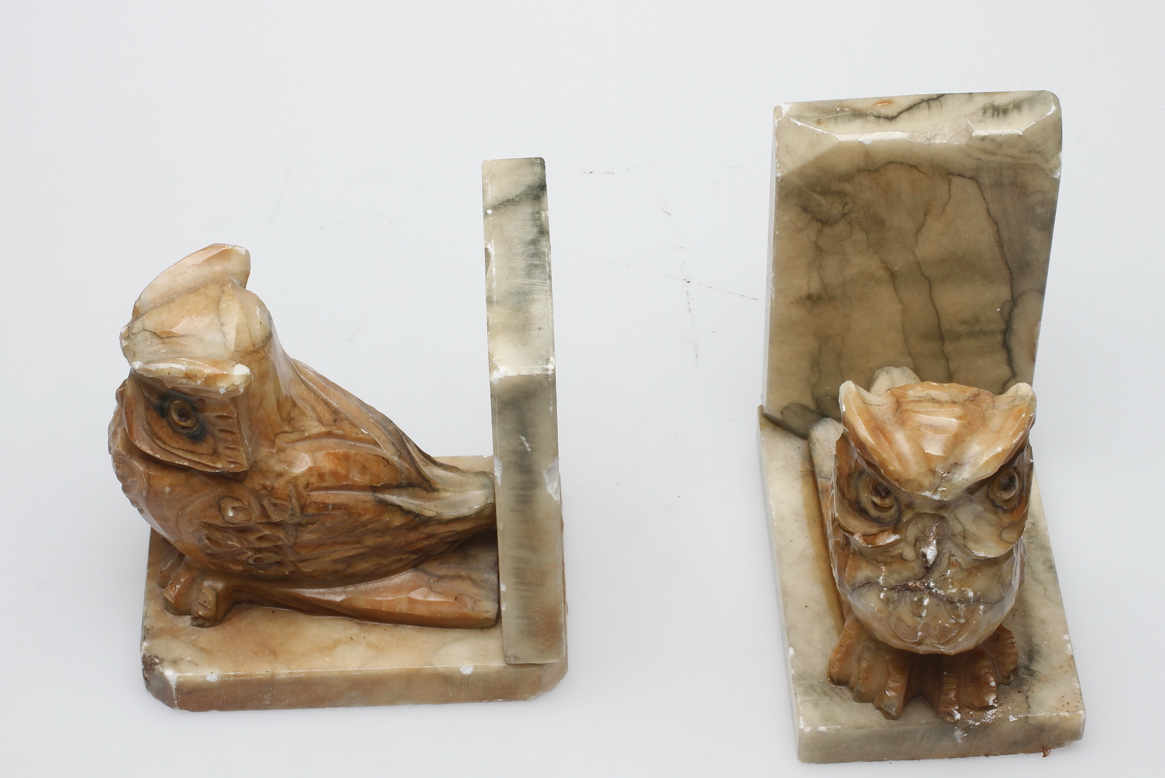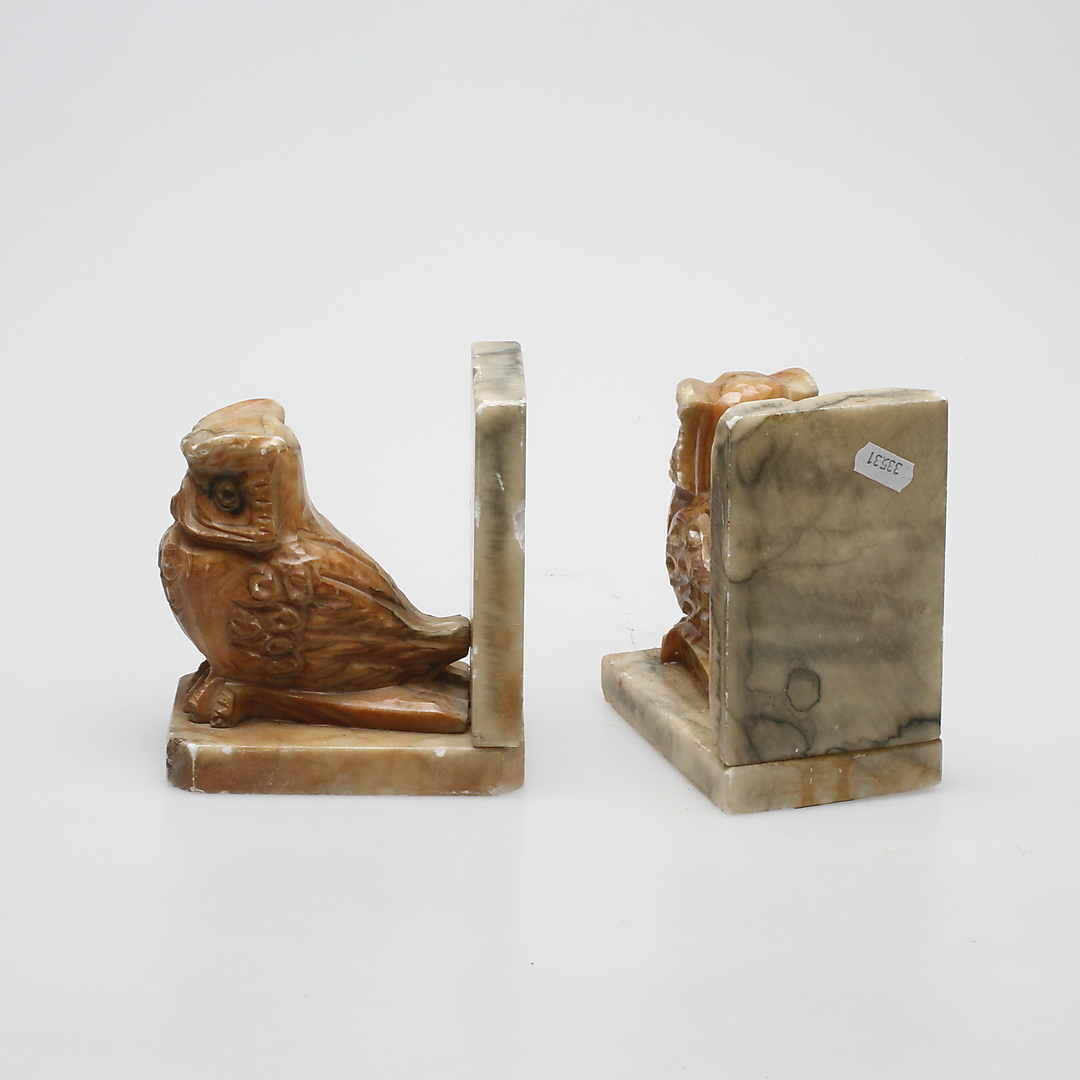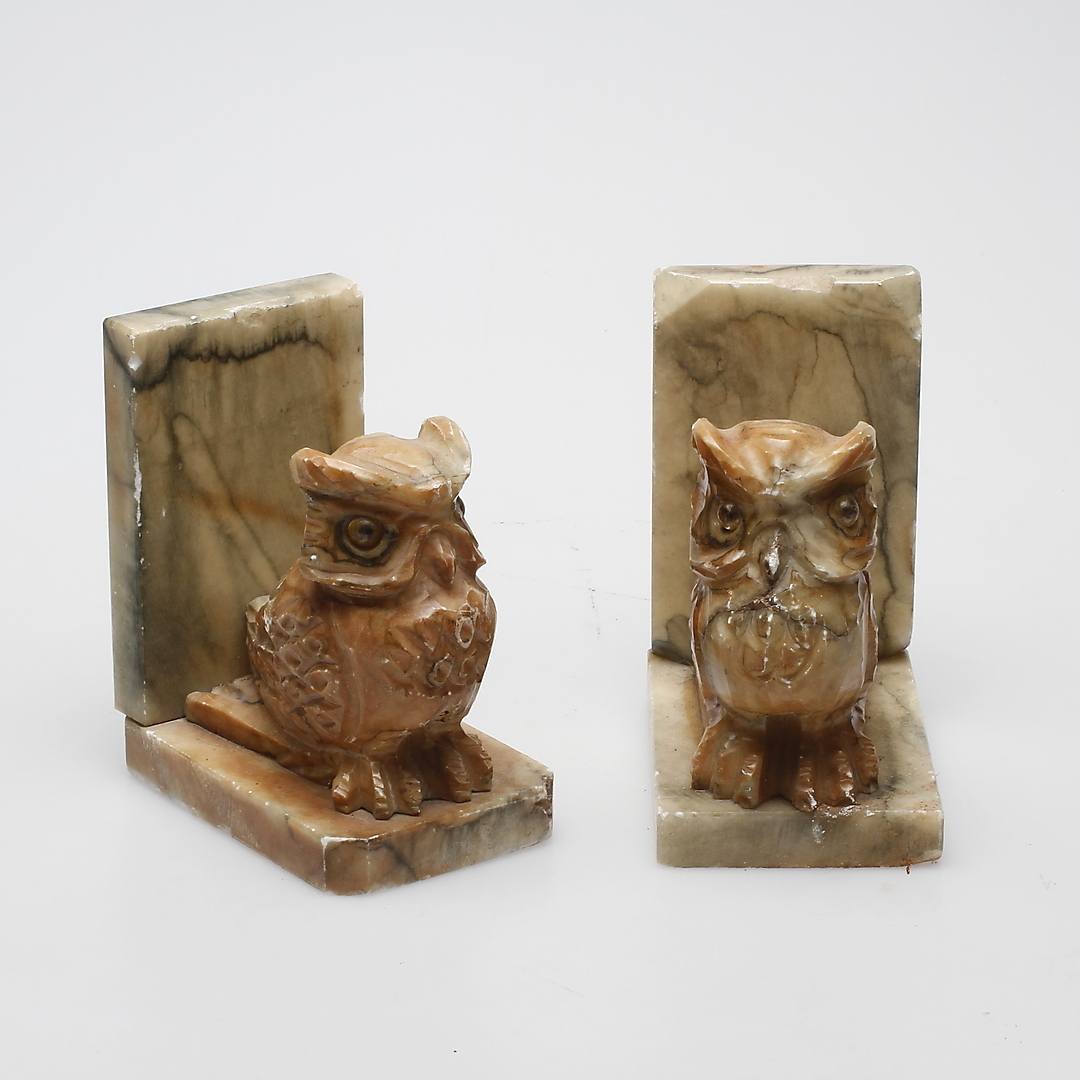 205717. BOKSTÖD, ett par, sten, ugglor.